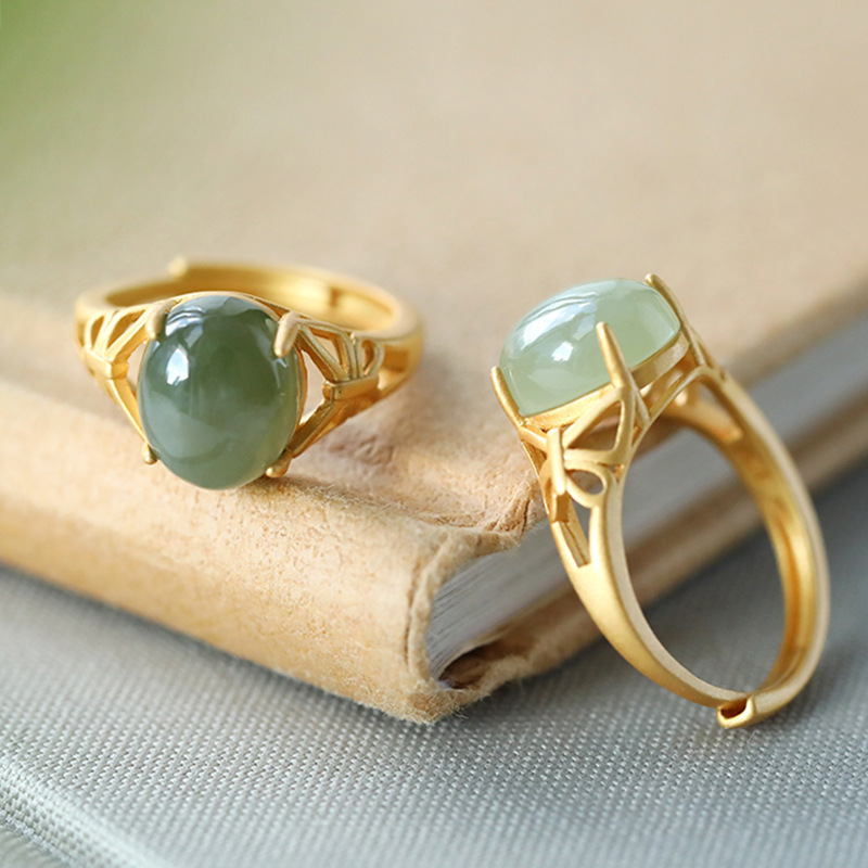 正統和田青玉指輪女性s925銀金メッキは碧玉透かし彫り蝶指環名族風シンプルで洗練されている