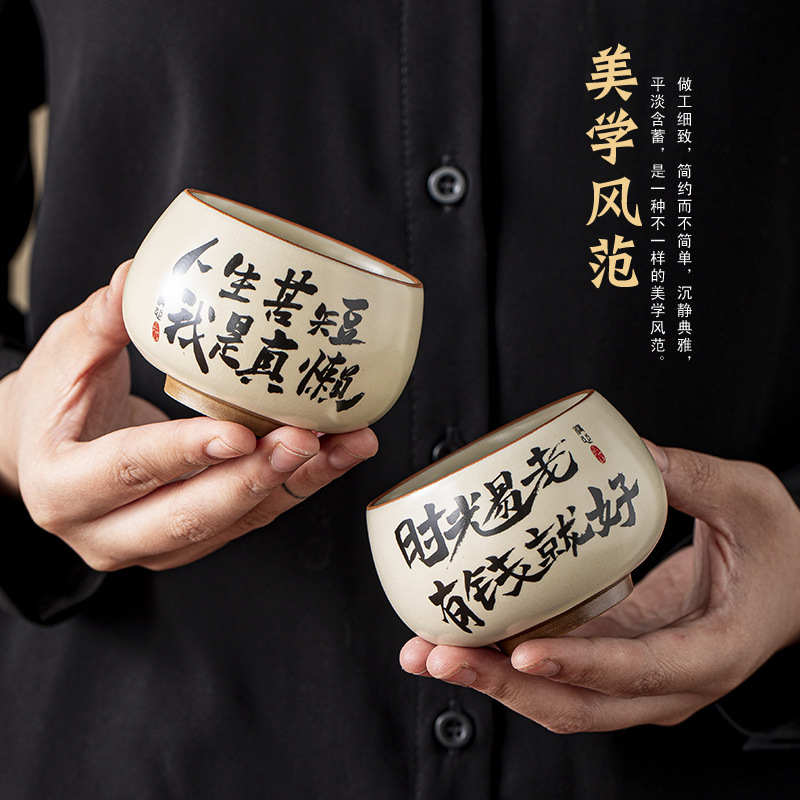 ベージュ汝窯セラミック書道ティーカップホームクリエイティブパーソナルマスターカップ手書きティーカップセラミックシングルカップ
