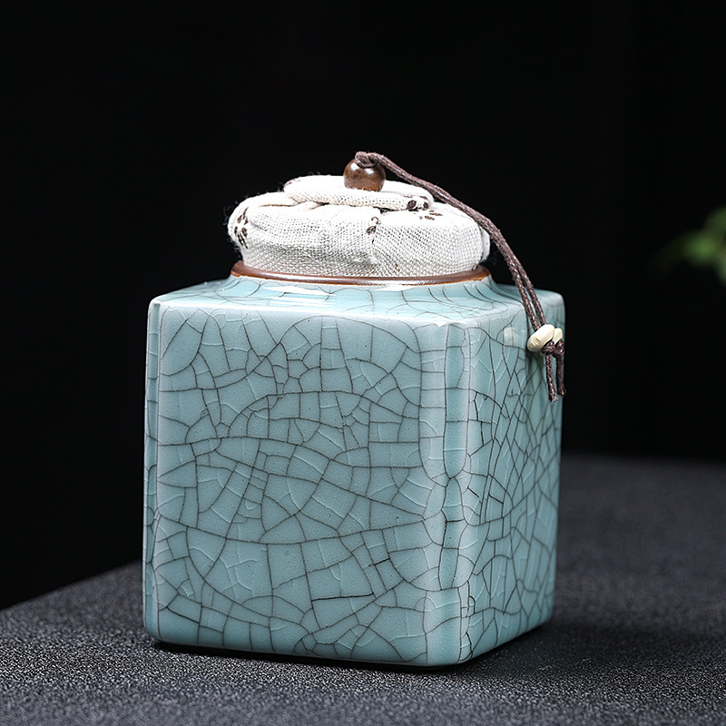 哥窯茶葉缶開片禅翼紋陶磁器缶防湿茶葉貯蔵缶乾燥果収集箱陶缶中国式