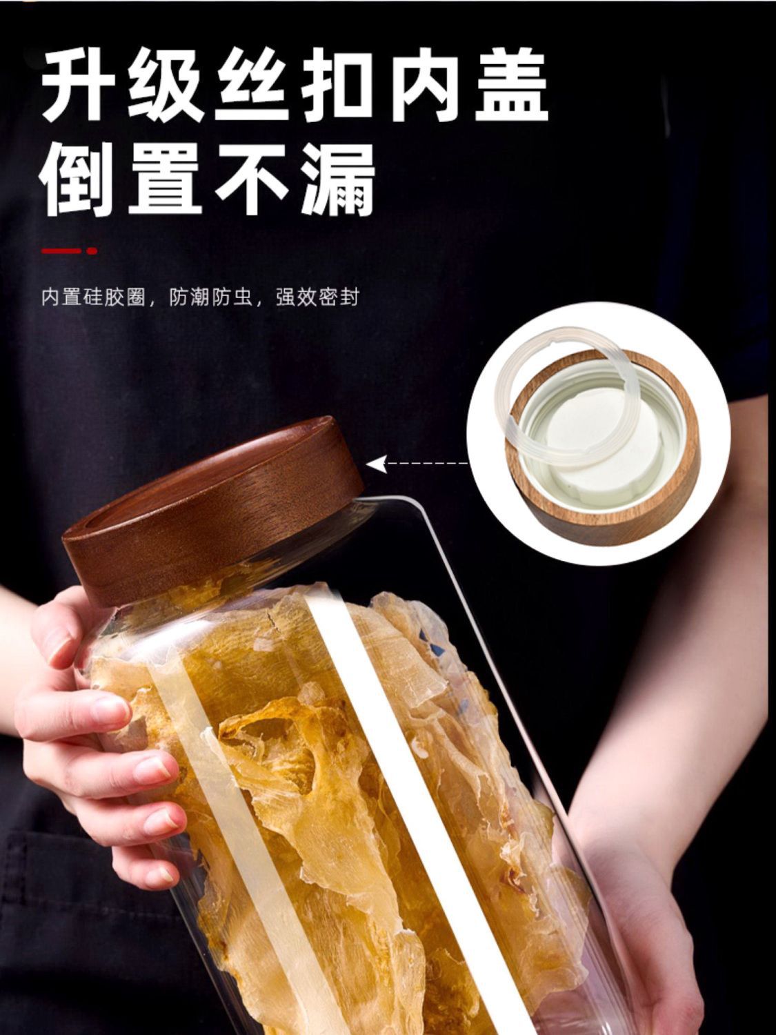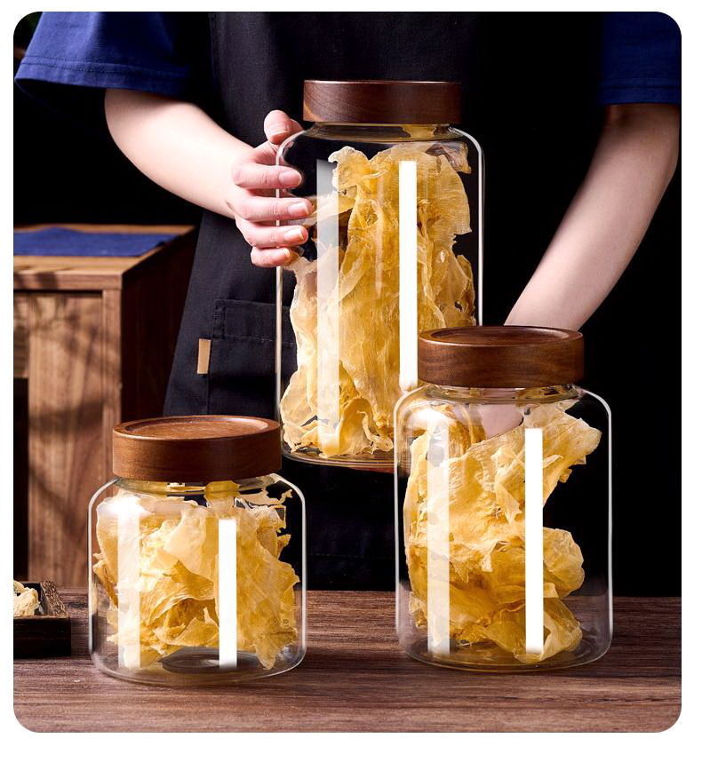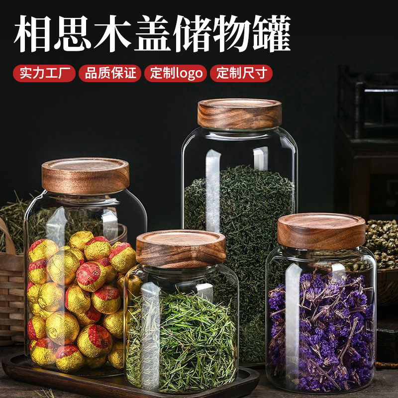 批发相思木盖储物罐陈皮罐家用圆形透明高鹏硅玻璃密封罐茶叶罐子