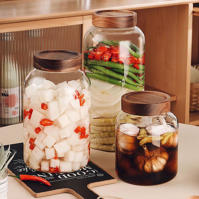 高ホウケイ酸ガラス大型保存瓶透明アカシア木製茶瓶穀物ドライフルーツみかんの皮保存瓶密封瓶