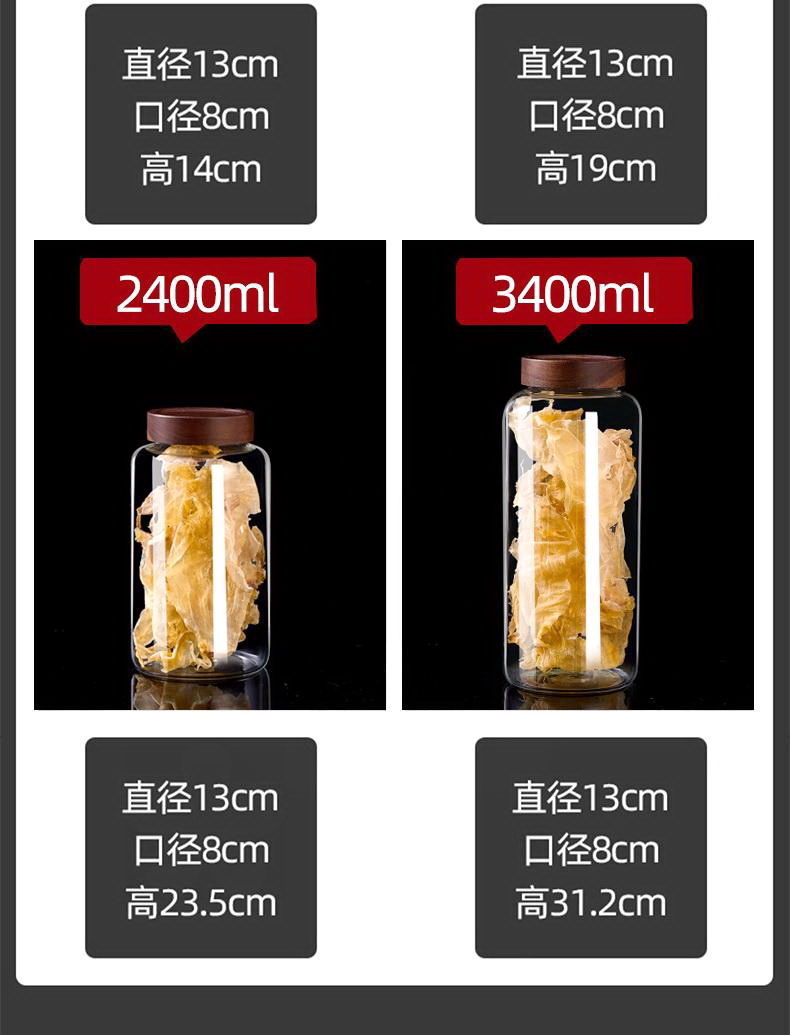 大型アカシア木蓋貯蔵タンク陳皮缶家庭用円形透明高鵬シリコンガラス密封缶茶缶