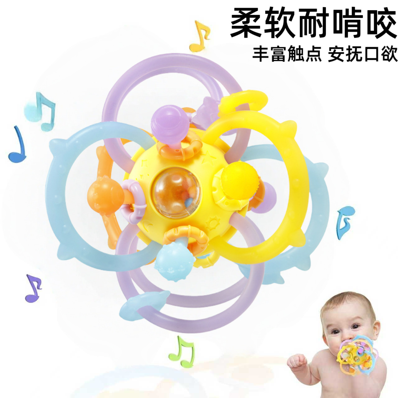 クロスボーダーマンハッタンハンドグリップボール食品グレードの噛みつき可能な歯固め0-1歳の赤ちゃんの把握トレーニングガラガラ知育玩具