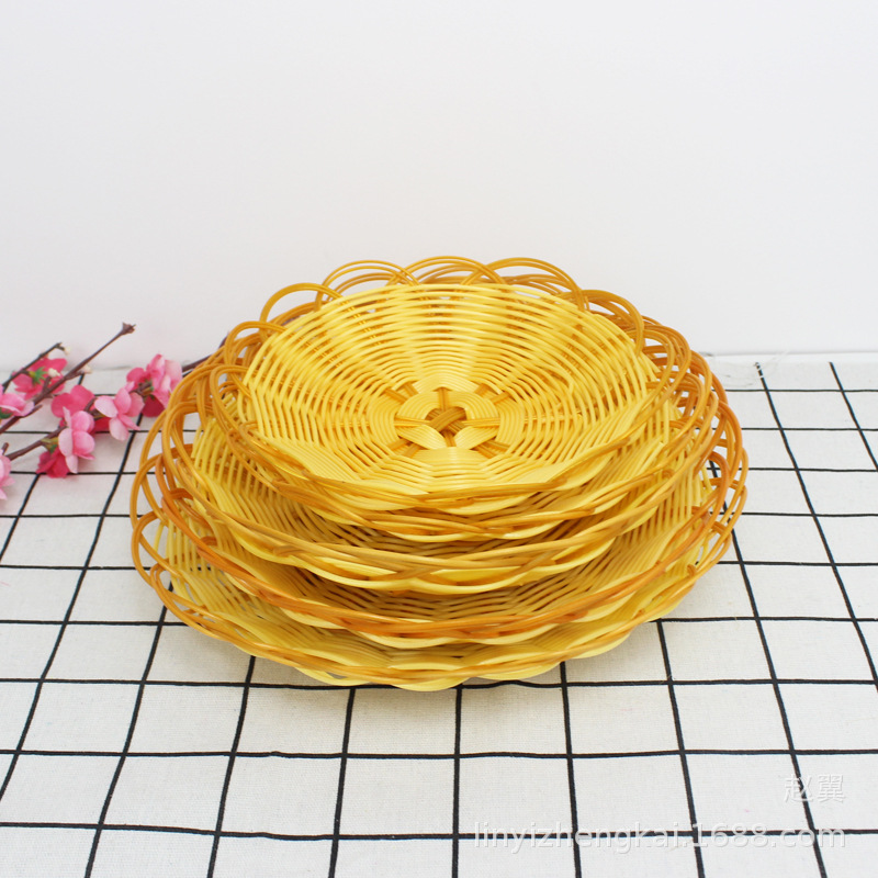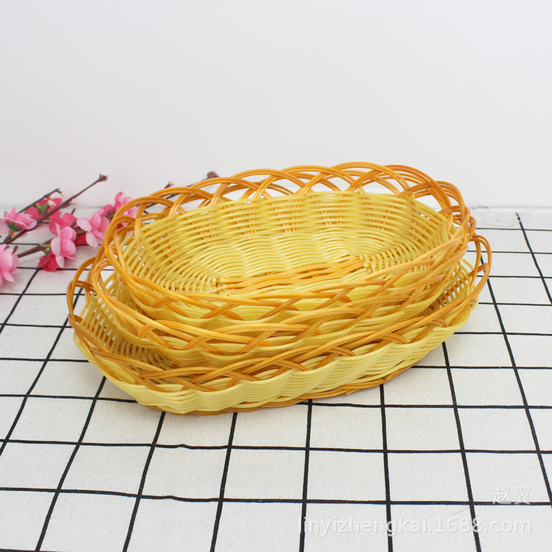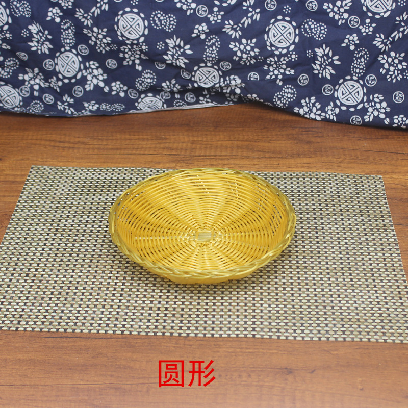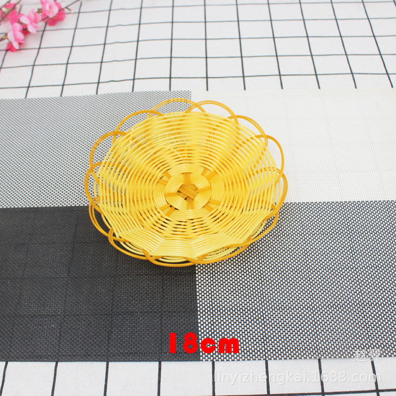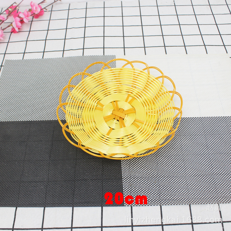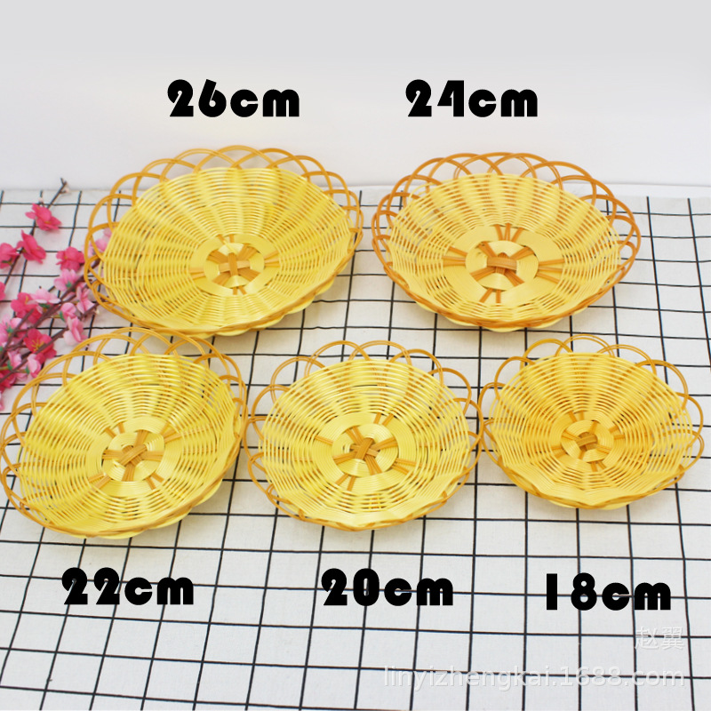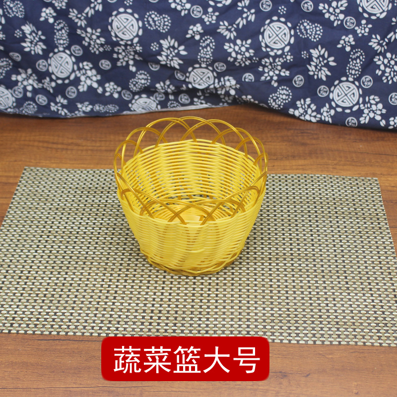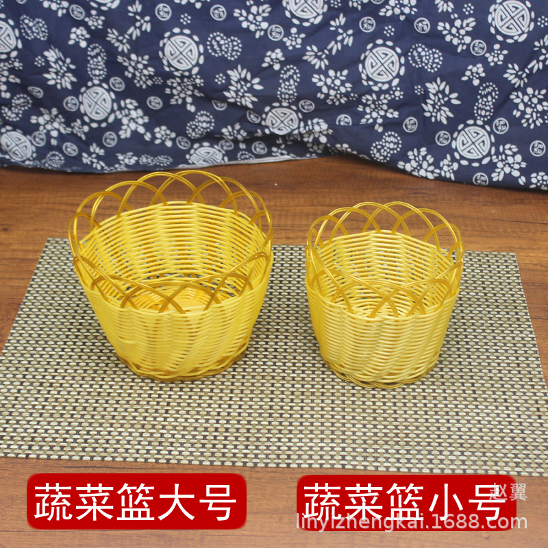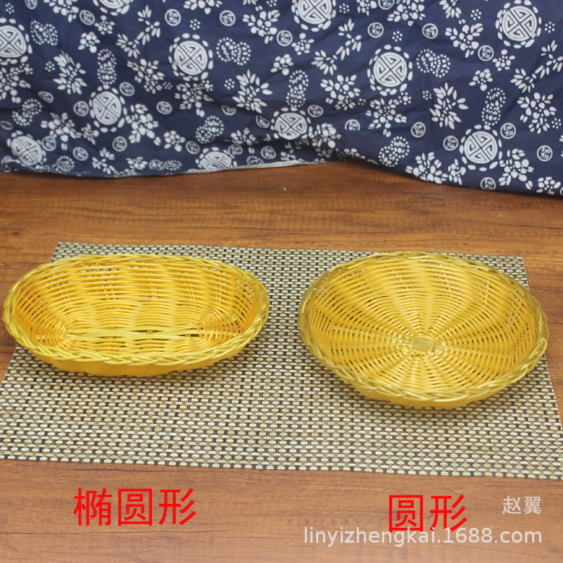 产品是手工编织的塑料篮子,编制的工人有很多,每个人手法不一样,成品尺寸会有些差异,并不像模具铸造的都一模一样,介意的请不要拍。