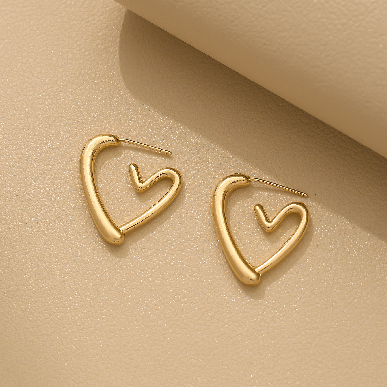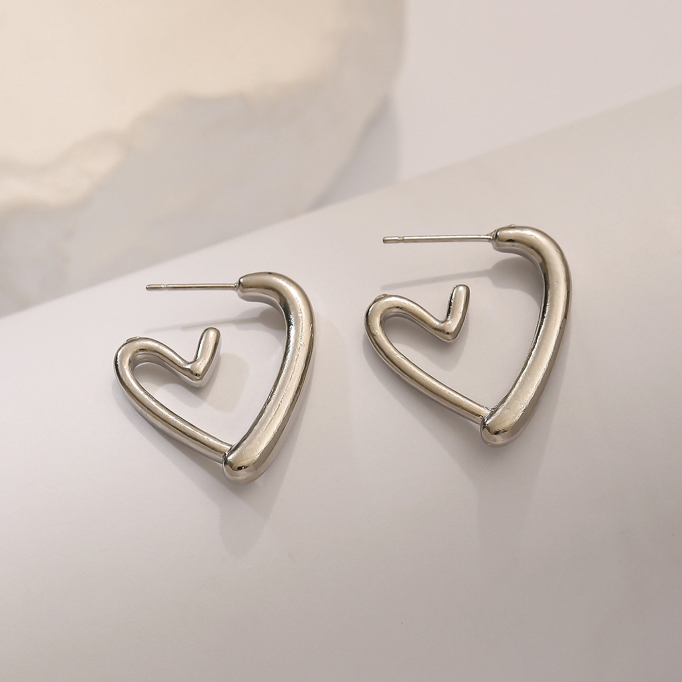 欧美跨境爱心耳环女简约心形耳钉高级感简约冷淡风爱心金属感耳钉