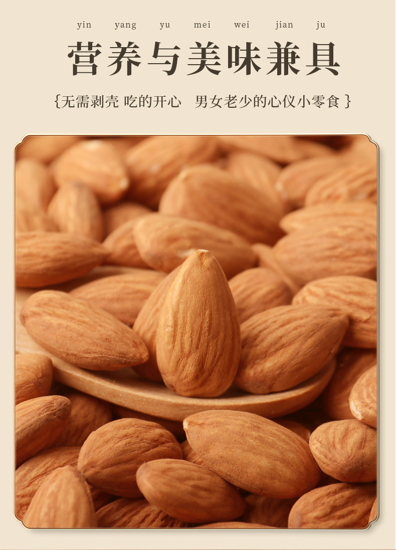 包装规格 原味巴旦木仁250g袋,原味巴旦木仁250gx2袋,盐焗巴旦木仁250g,盐焗巴旦木仁250gx2袋,原味250gx4袋,盐焗250gx4袋,原味250gx2袋+盐焗250gx2袋