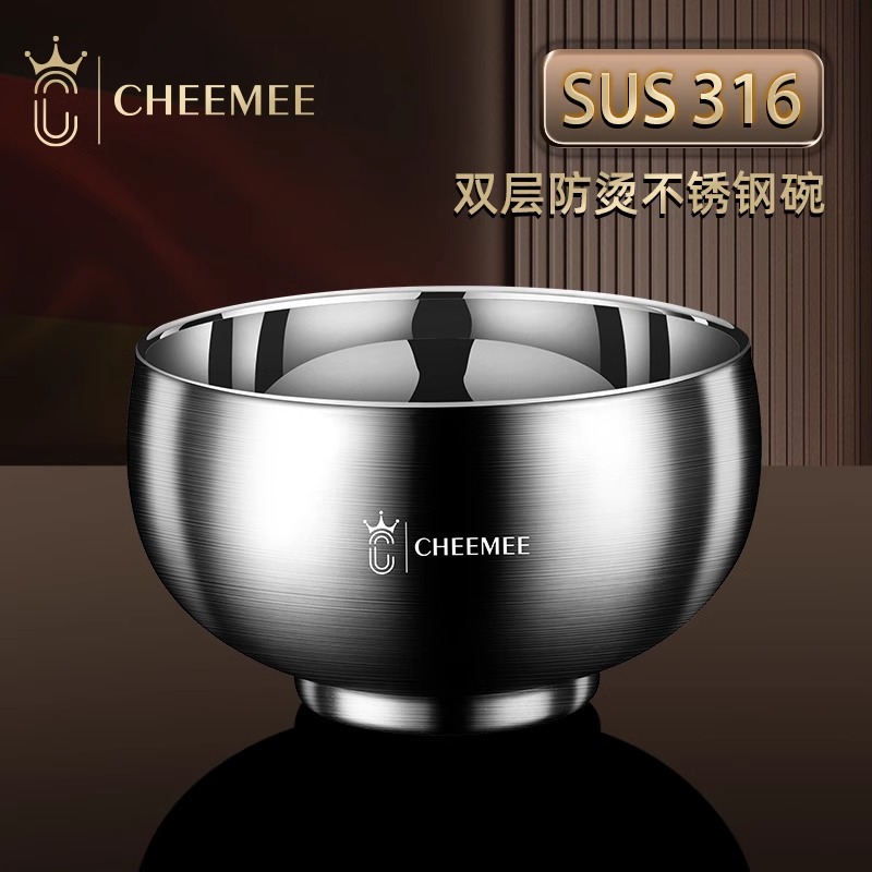 316食品級ステンレスボウル家庭用児童成人二重断熱茶碗セット304スープボウル転倒防止熱