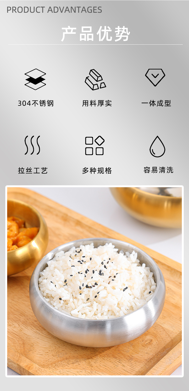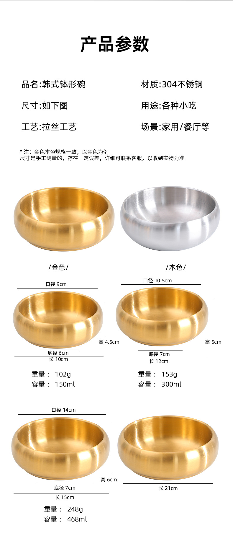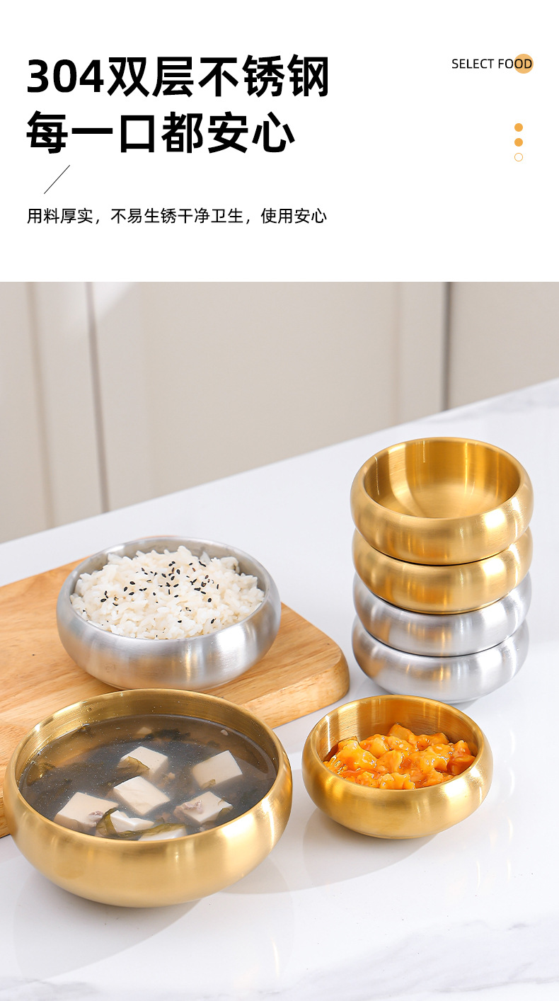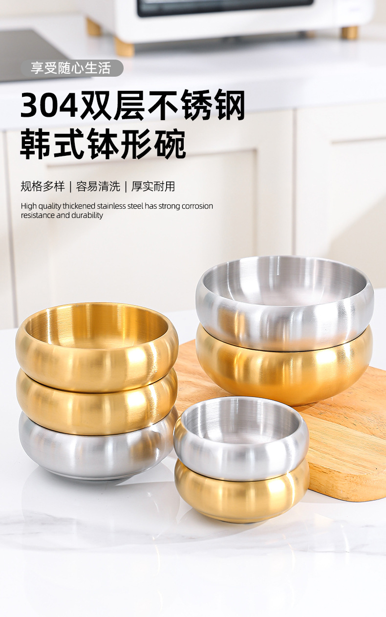 韓国式304ステンレス創意鉢形碗二層厚い商用レストランソース碗断熱ご飯碗スープ碗