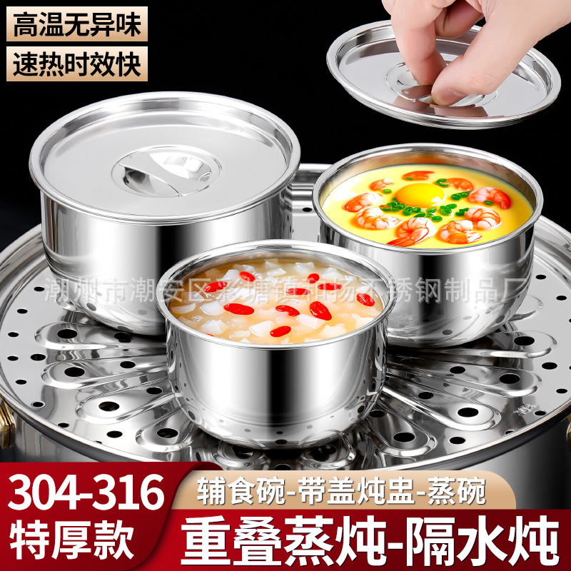 304 316L食品級ステンレス蓋付き卵スープ蒸しボウル減肉デザートボウル赤ちゃん補助ボウル新鮮箱