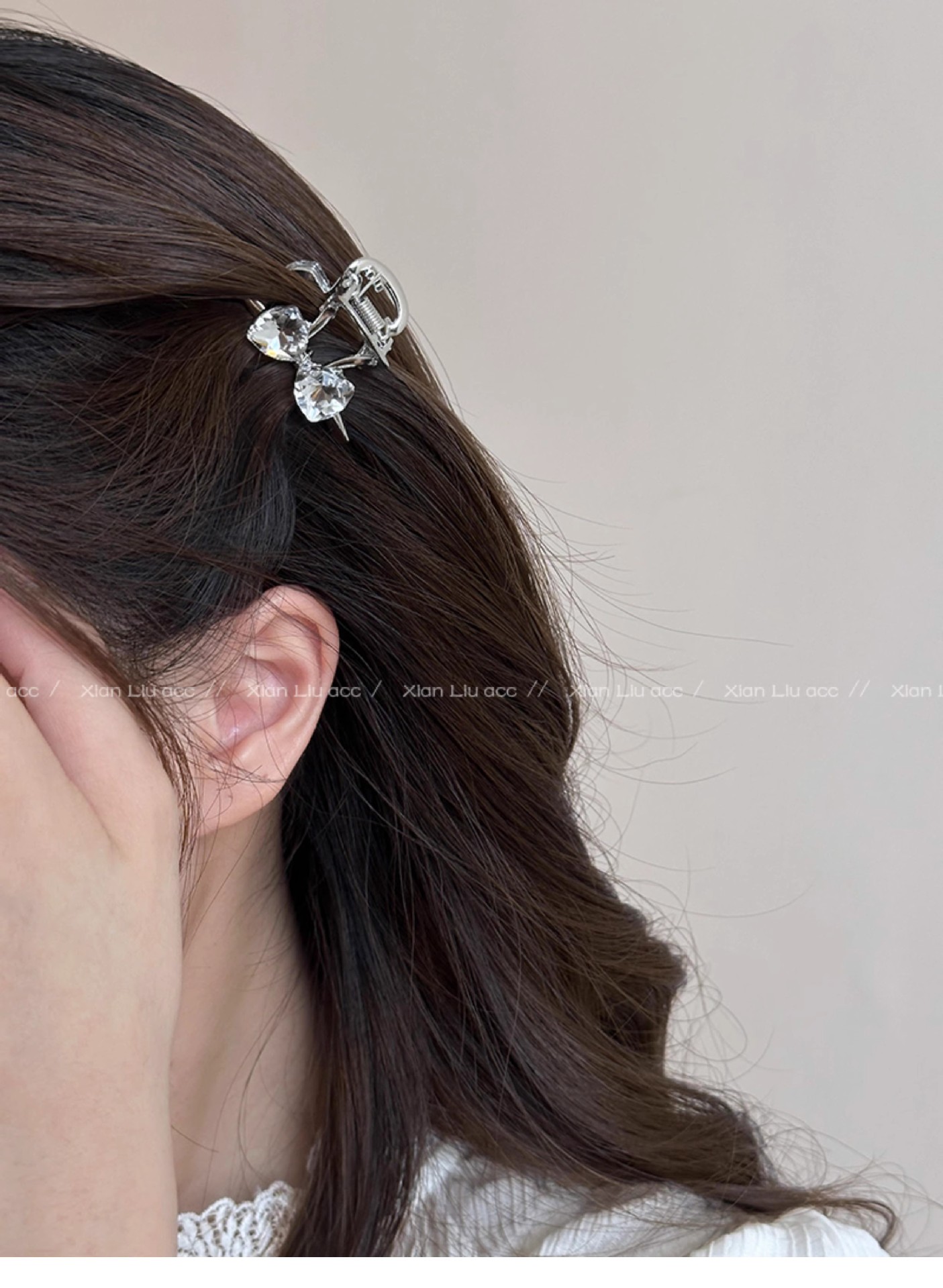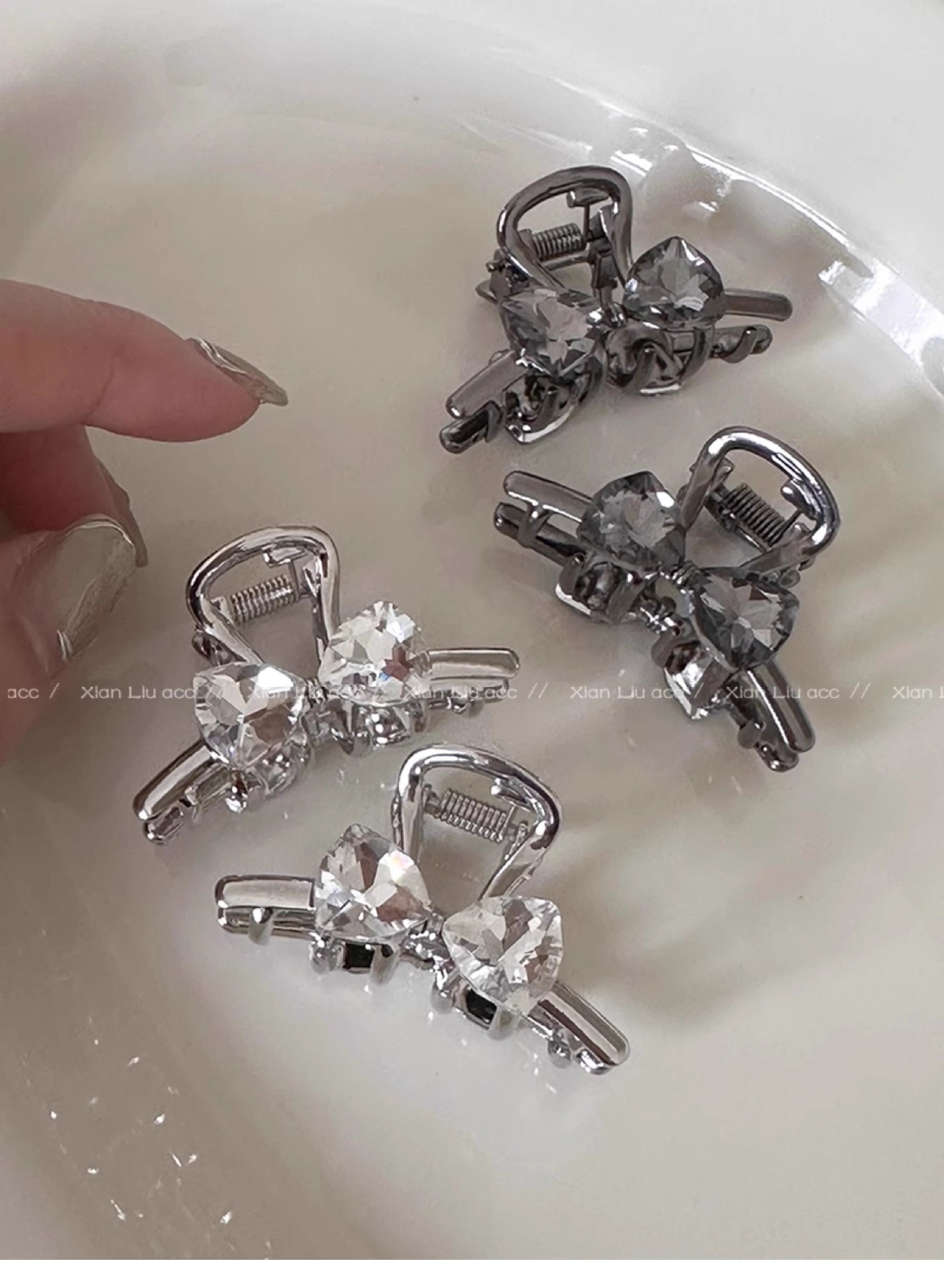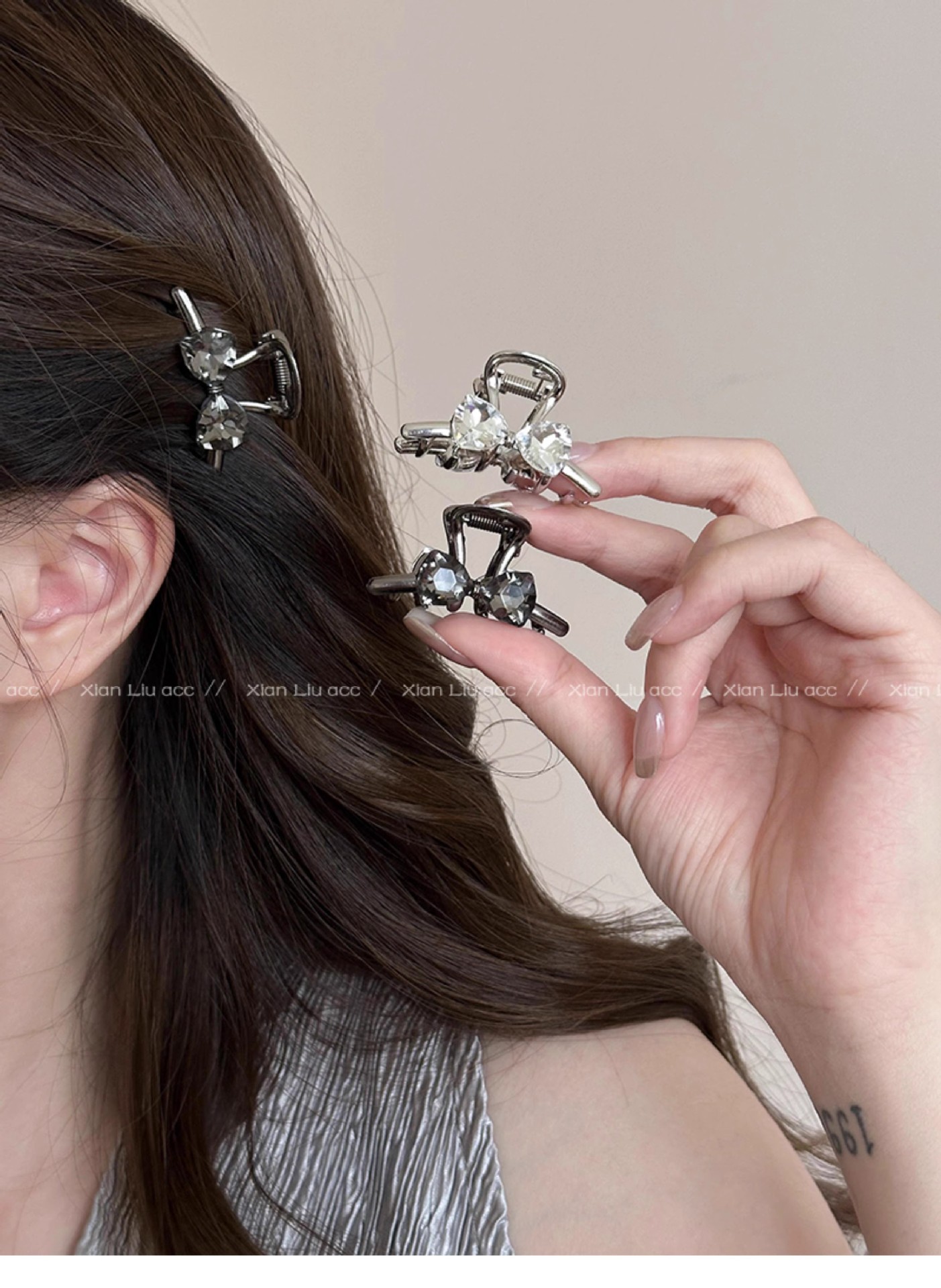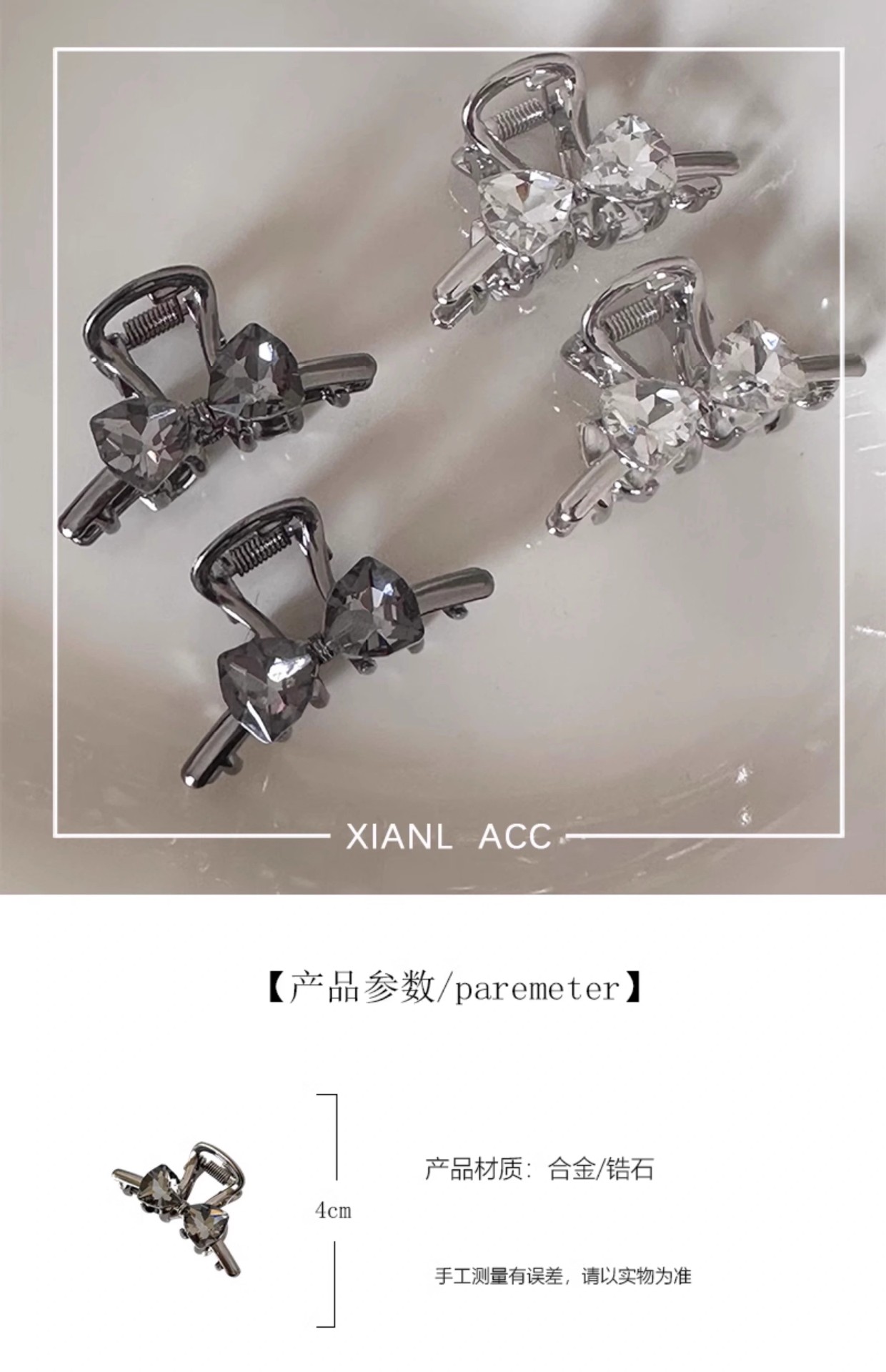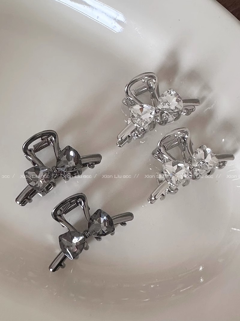 小号水钻蝴蝶结侧边鸭嘴夹子水晶发卡高级感前额碎发夹迷你刘海夹