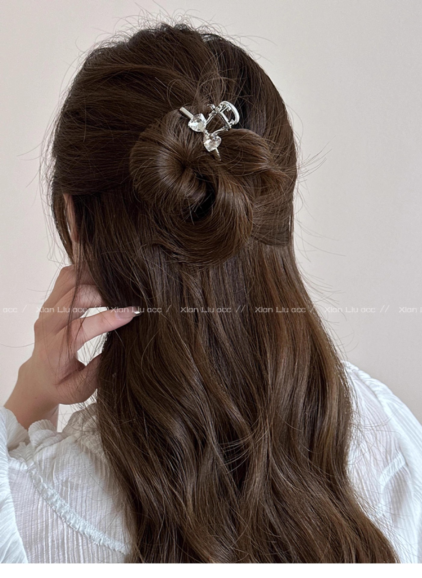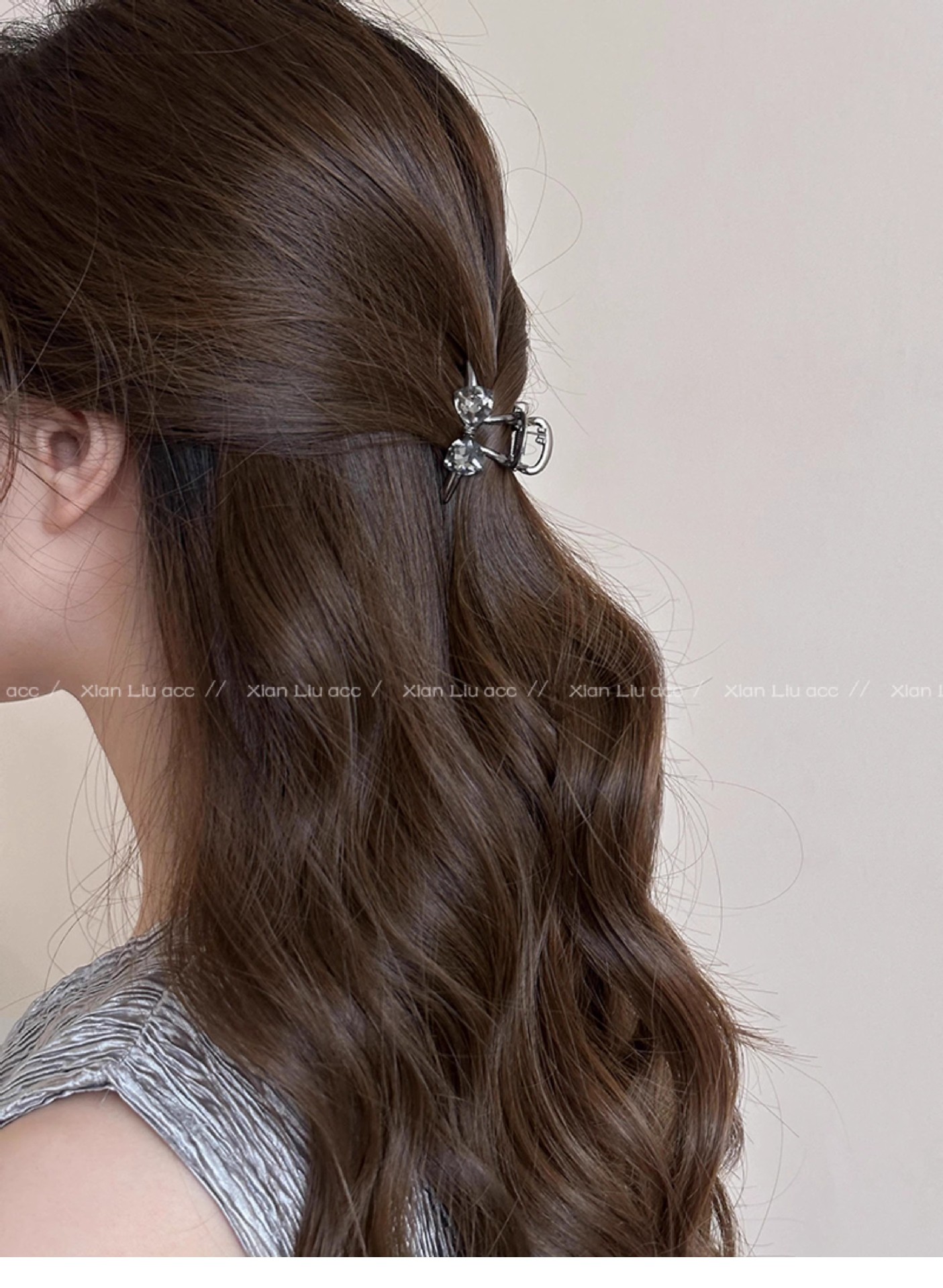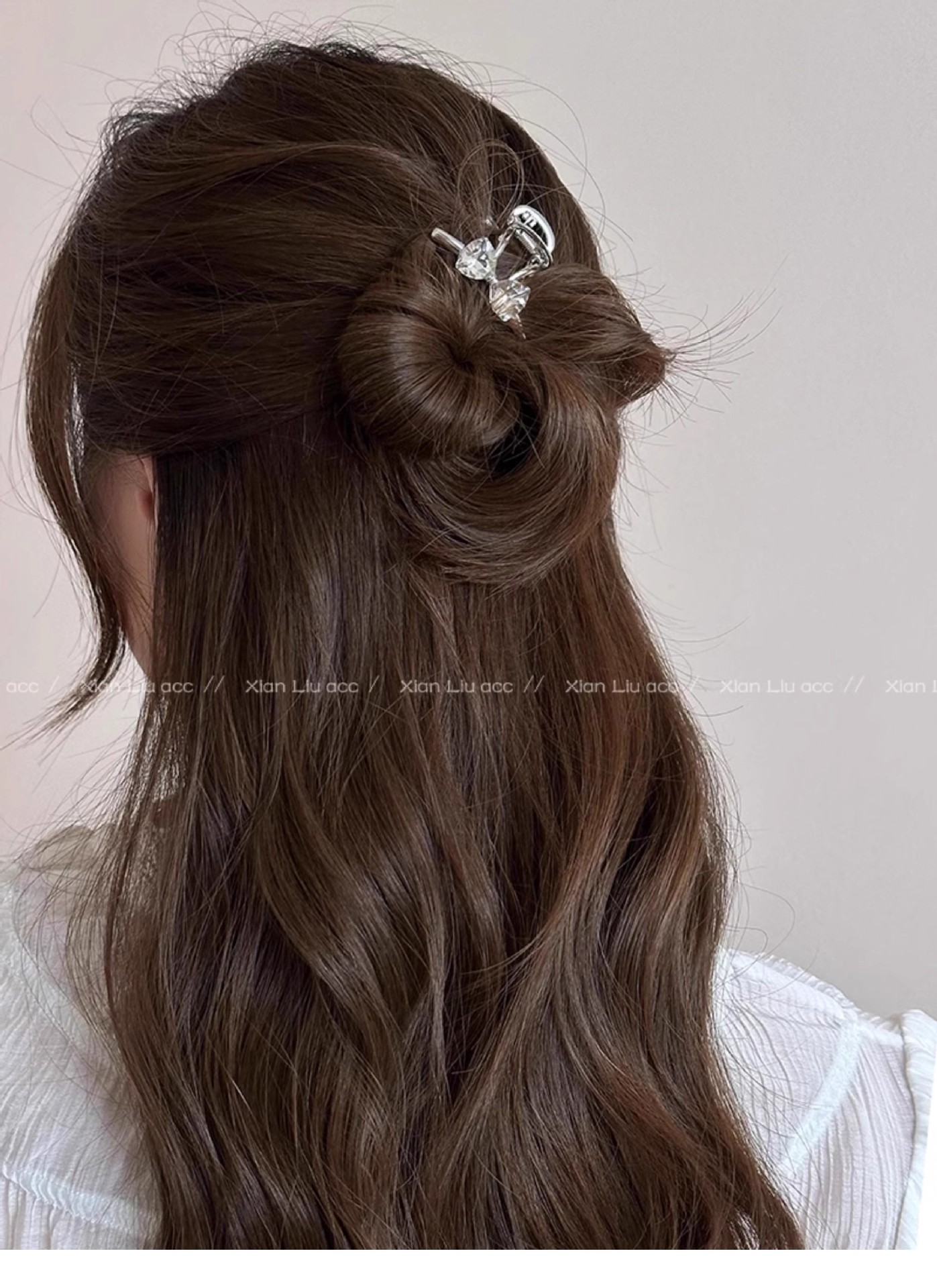 韓国版の髪飾りの銀色の大きいサイズのヘアピンの後頭部は女子の髪飾りのネットの赤いサイズの金属を挟んでサメのクリップを挟みます。