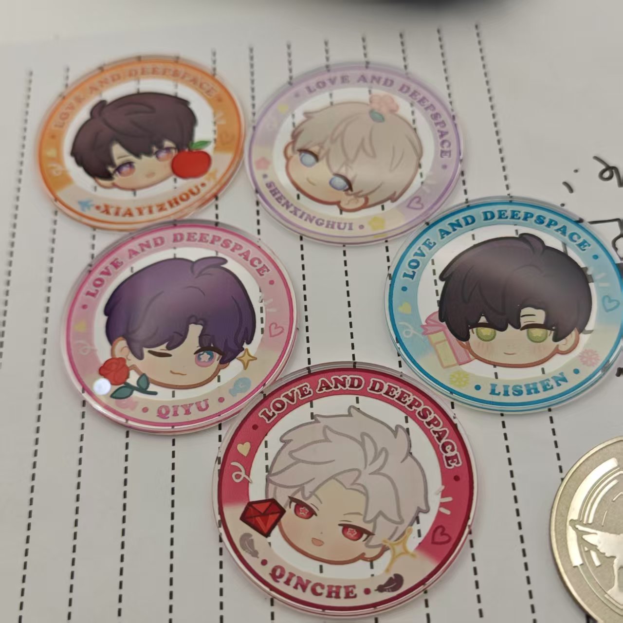 恋と深空アクリルのチップ貨幣の両面の高清の図案の二次元のゲームの周辺の装飾の小物