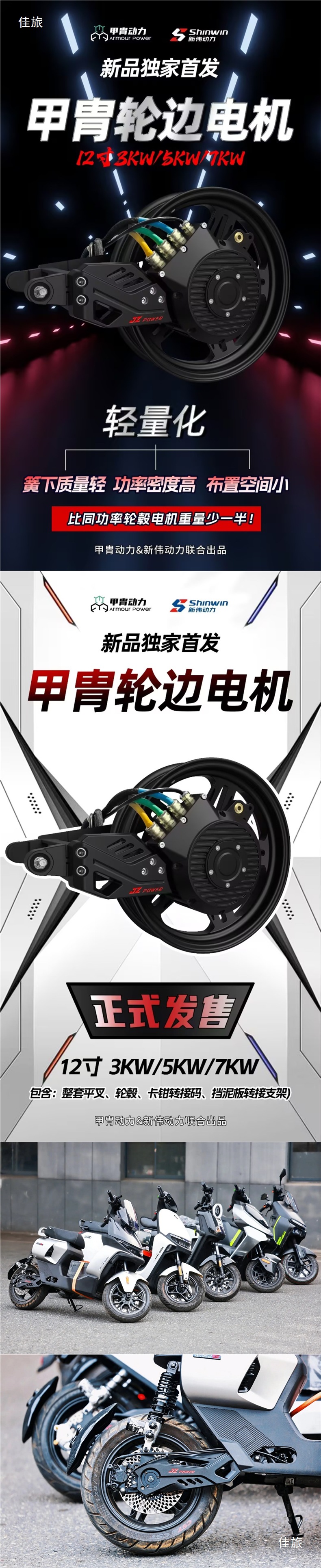 ホイールサイドモーターサイドマウント空冷モーター 3000W 5000w7000W フラットフォークハブキャリパーセット