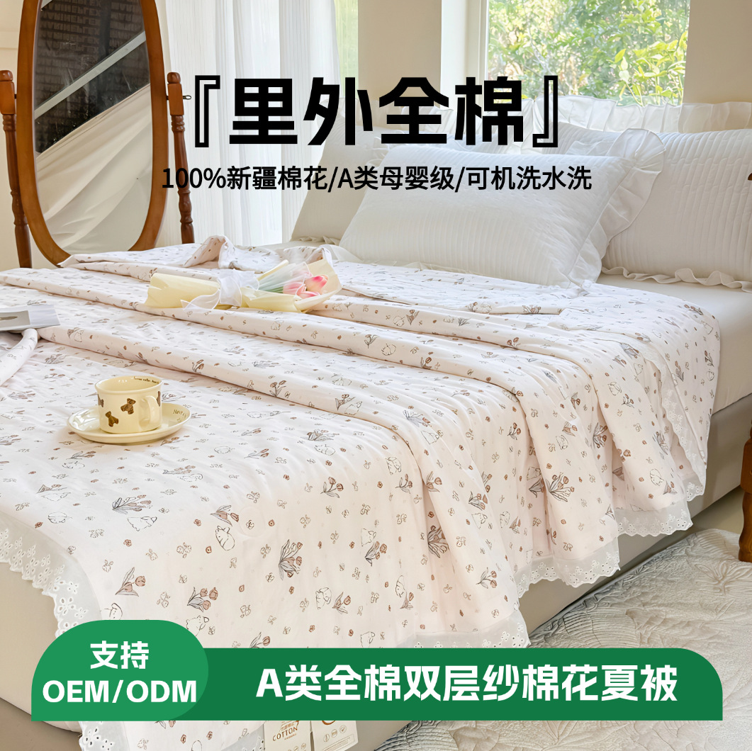 クラスA綿二重糸レース純綿サマーキルト小花柄サマークールエアコンキルトクロスボーダーメーカー直販刺繍