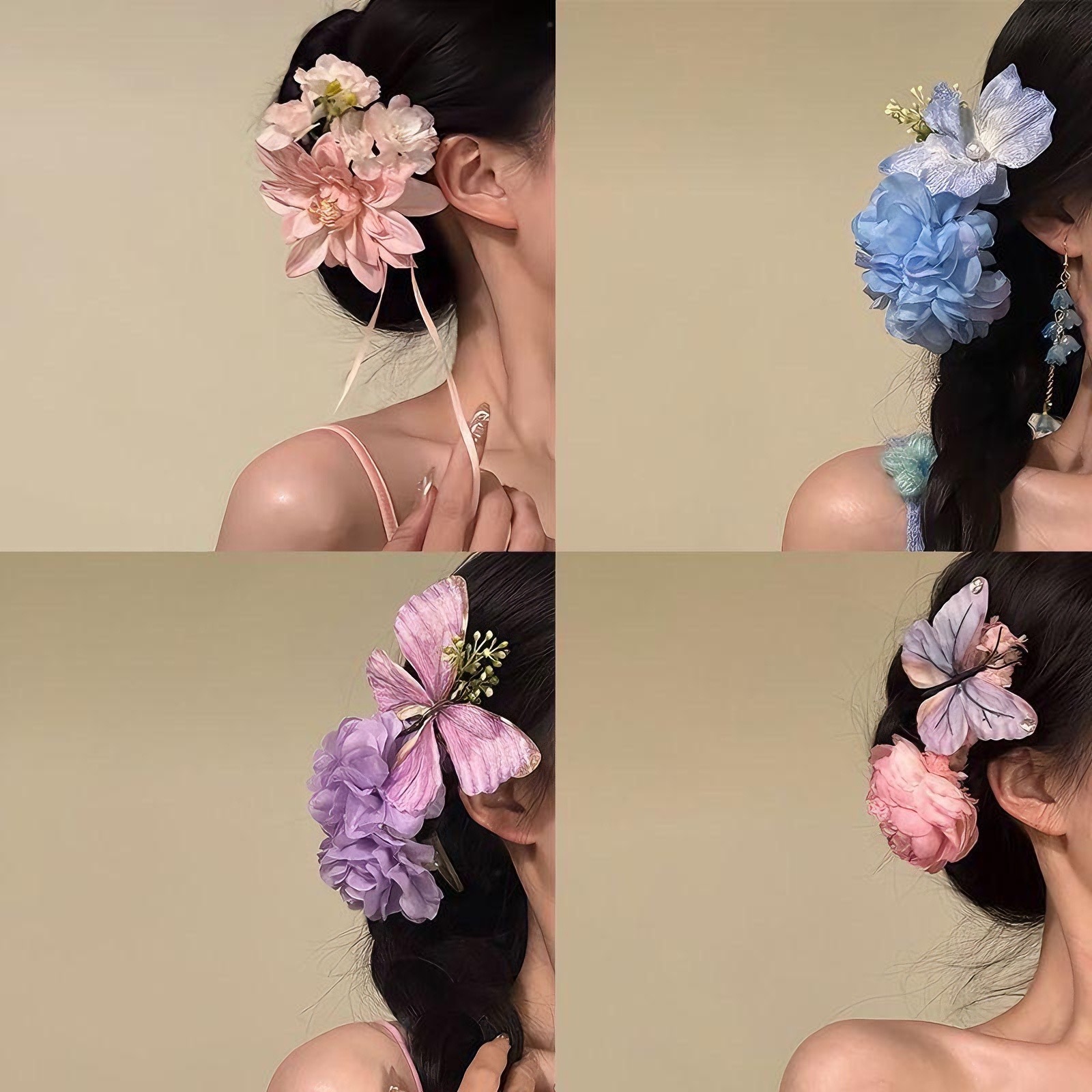 蝶恋花早春雰囲気立体高級感蝶ヘアピン女森系花鴨口クリップ甘い小衆髪飾り
