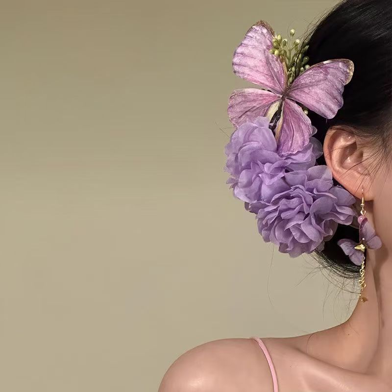 [花蝶の影] 超妖精の美しい気質の花のヘアピン紫蝶サイドクリップヘアピンサイドクリップヘアピン