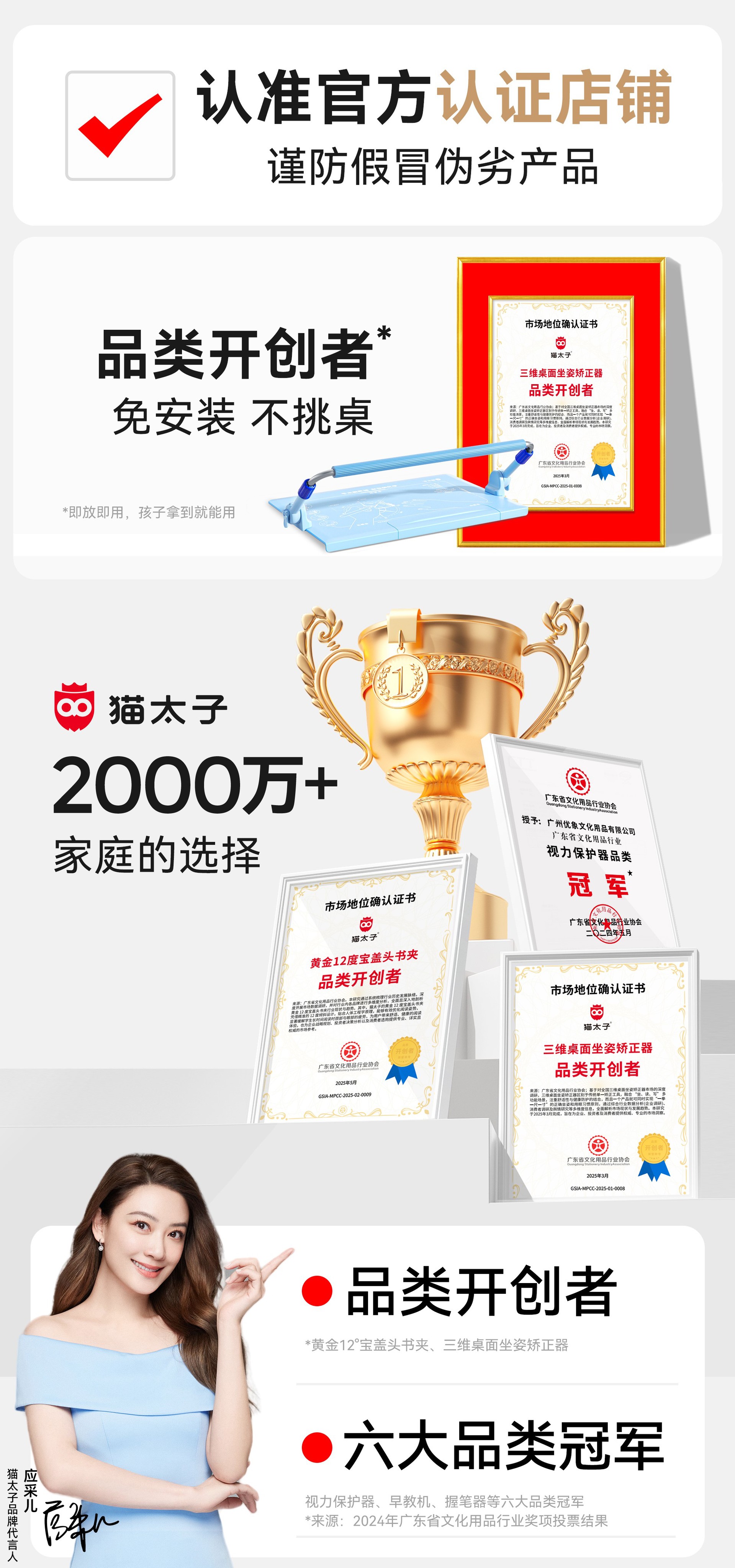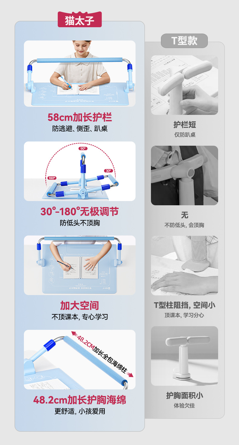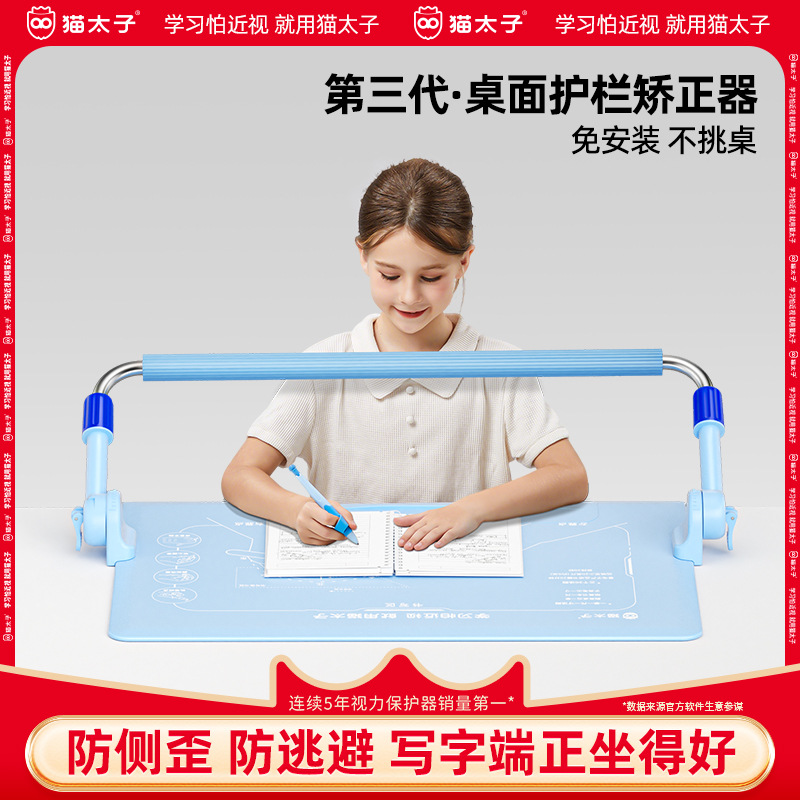 猫太子护栏坐读写12°坐姿矫正器儿童防近视学习纠正书写姿势神器