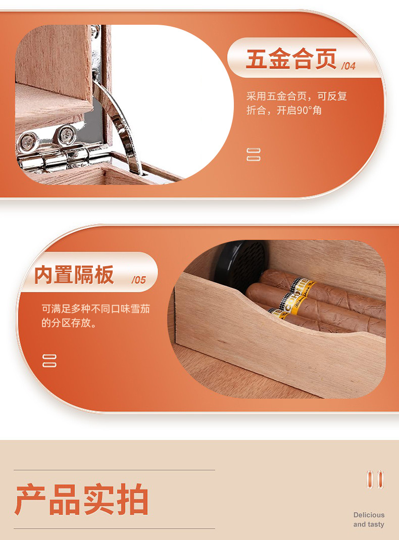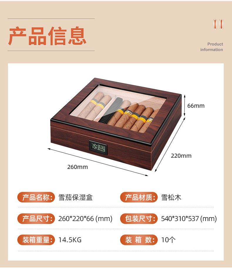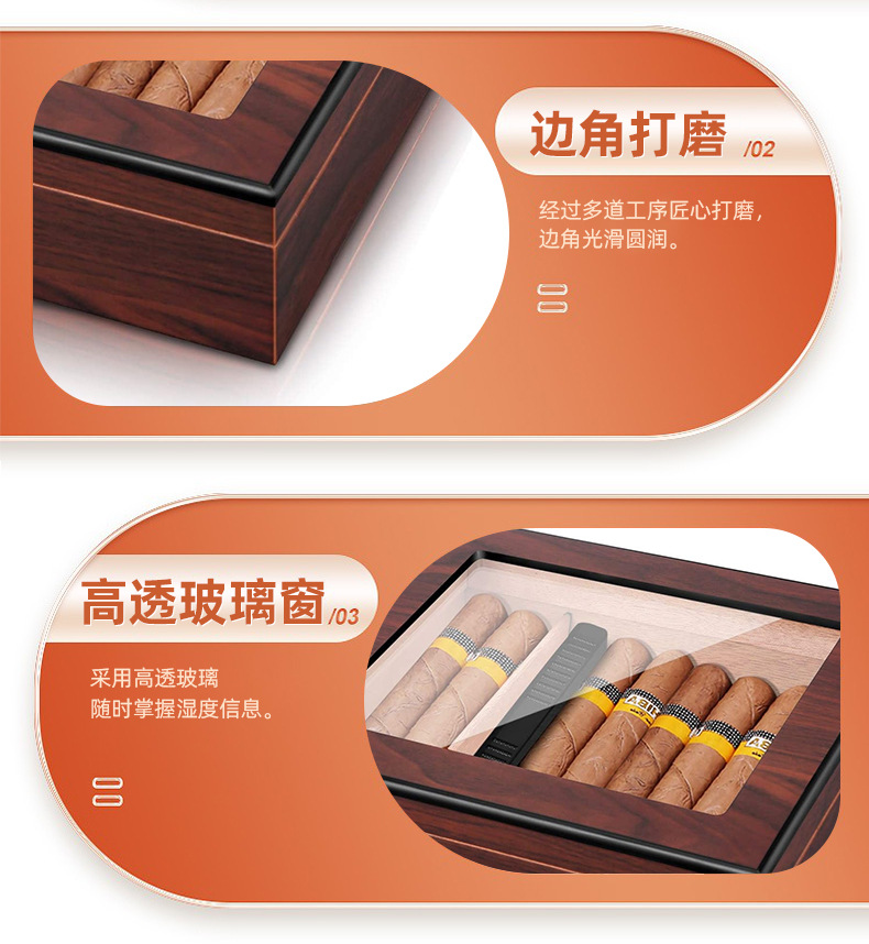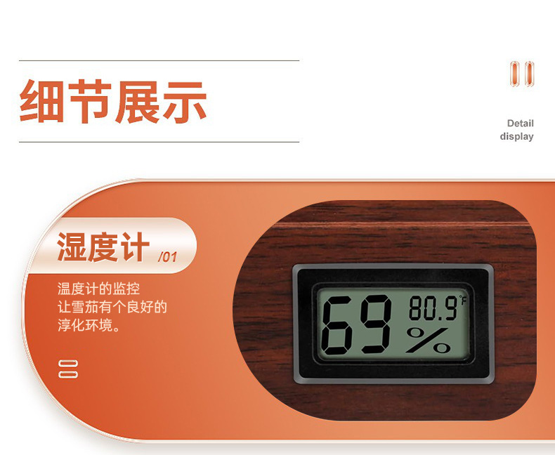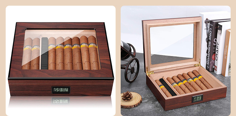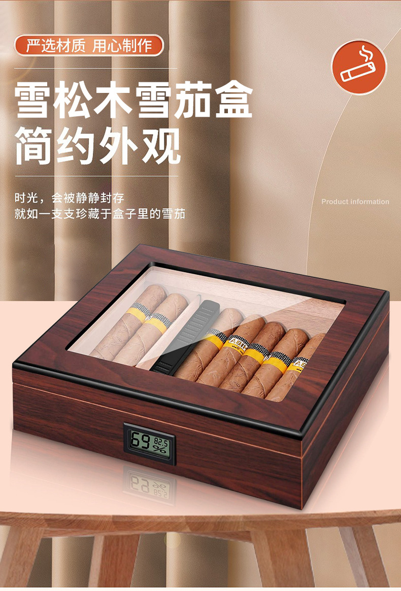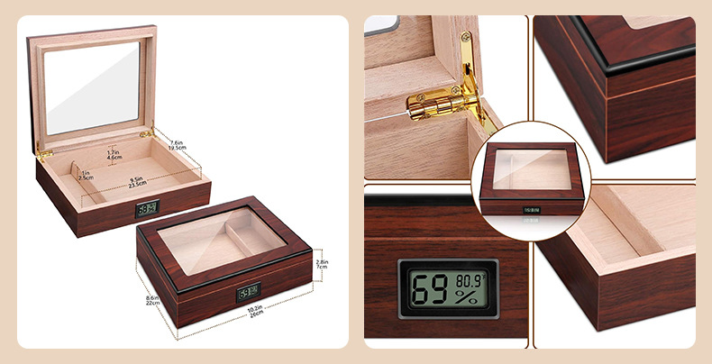 クロスボーダー艶消し塗料面電子湿度計シガーボックス二重透窓シガーウッドフリップシール保湿ボックス