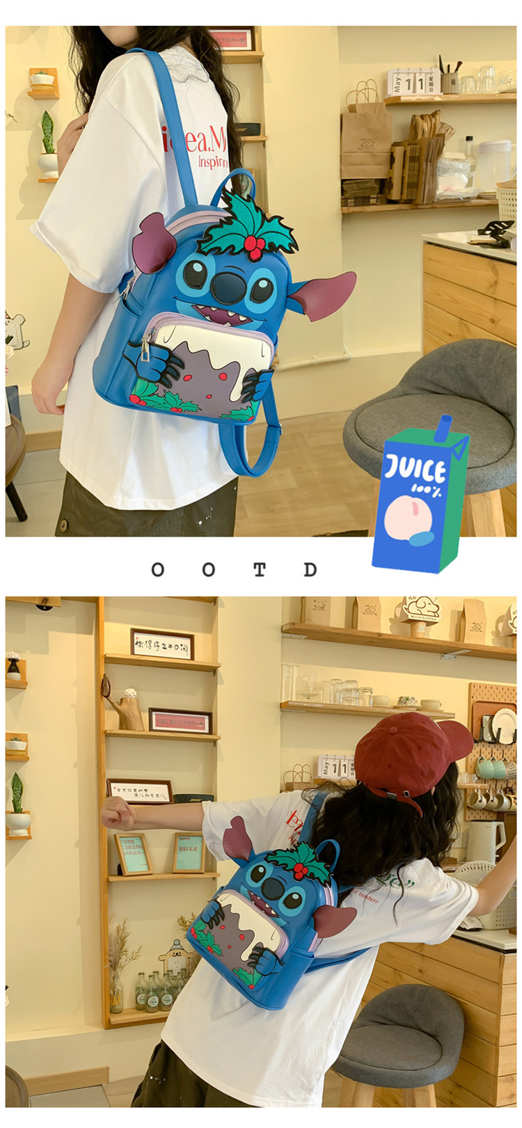 漫画インかわいいスタイルの小さなバックパックストリートミニバッグ女性のための 2025 新しいブルーモンスターバックパック
