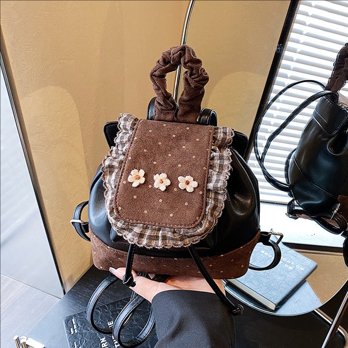 韩系格子少女双肩包可爱小花古着感文艺小清新学院风迷你出游背包