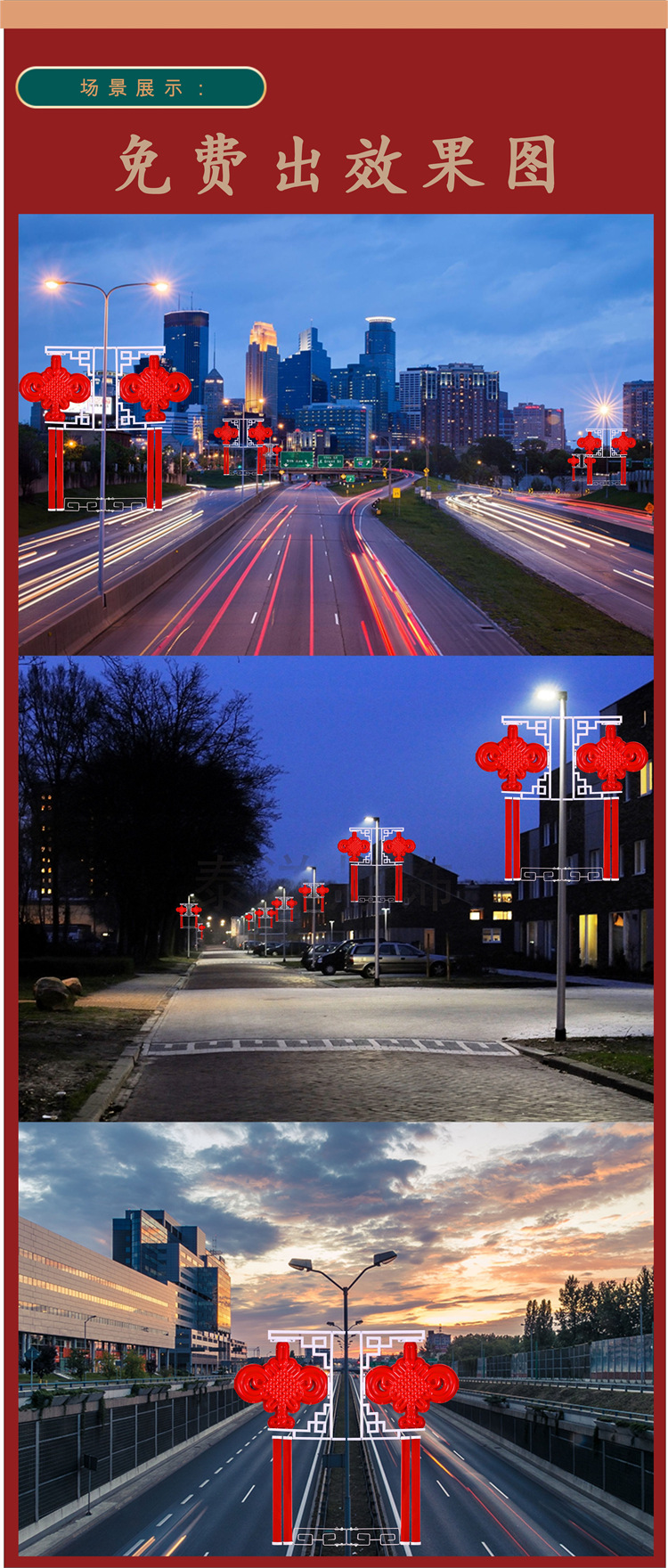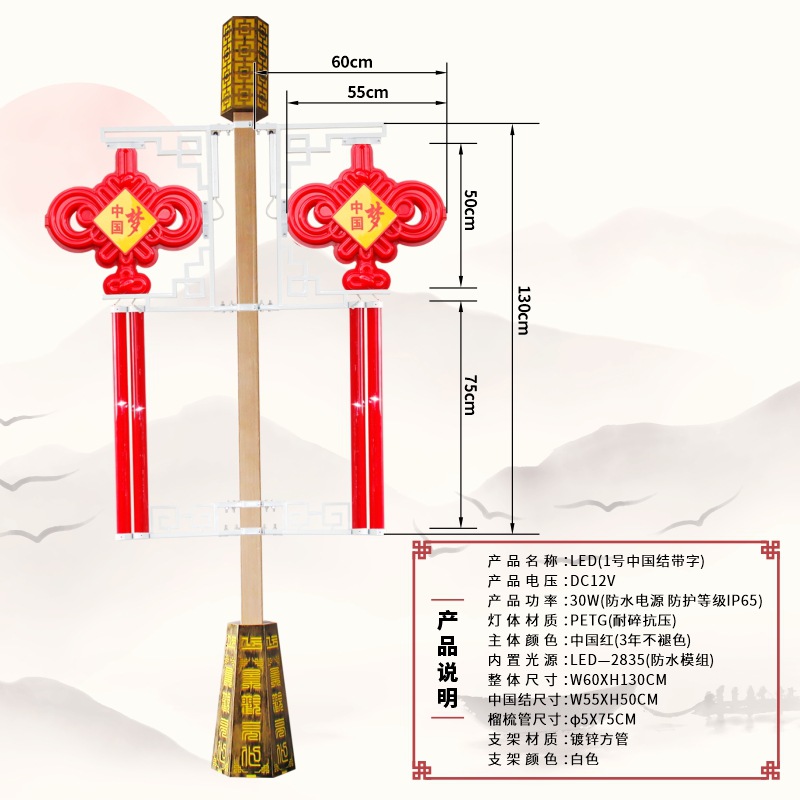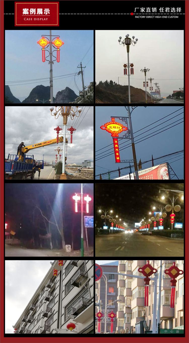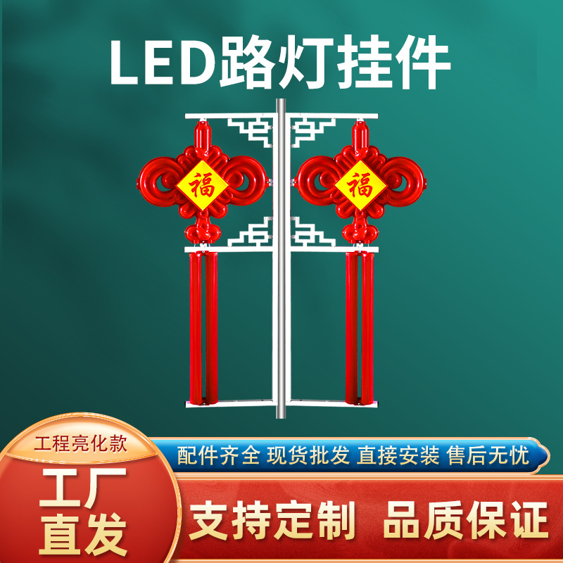 led太阳能中国结路灯挂件节日灯笼红旗灯街道景区亮化中国结路灯