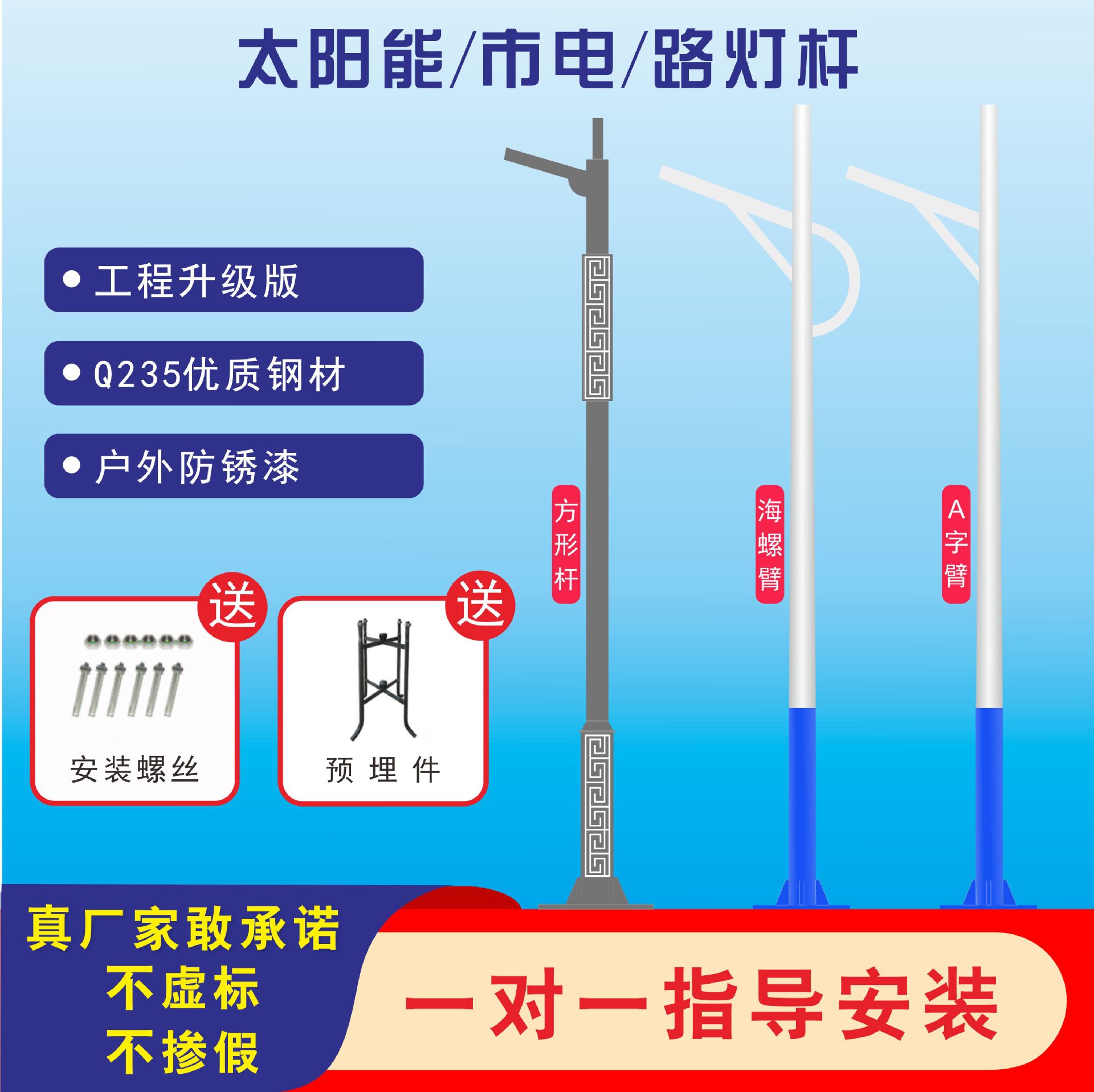 4メートル6メートル7メートル8メートル太陽エネルギー市電路灯棒方形回紋角管a字腕海螺壁高低腕
