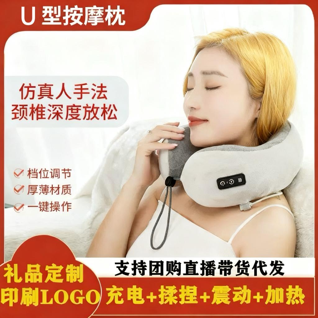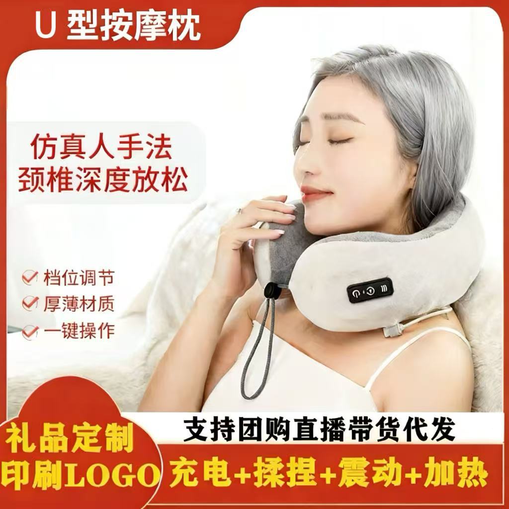 U型枕強力クロスボーダープレゼントアマゾンa級材質双方向モーター加熱マッサージ揉みu型マッサージ枕