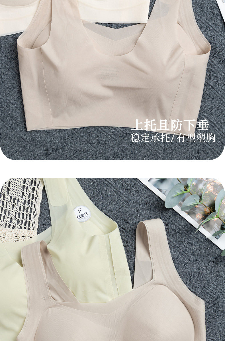 春夏のファッションの新しい通気性のあるシームレスな美しいバックオールインワン下着薄いゼリーストリップソフトサポートノンワイヤーブラジャー