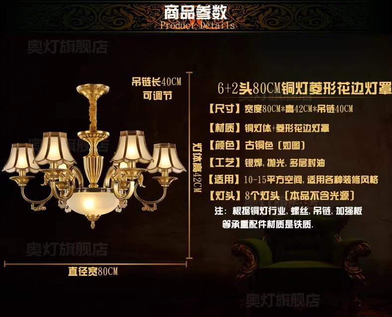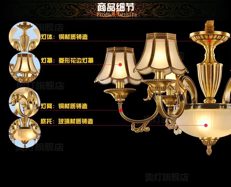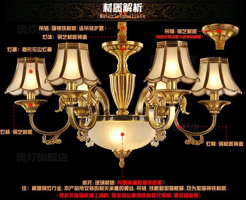 ヨーロッパ式単層全銅シャンデリア室内レストラン寝室書斎新古典客間LED照明器具