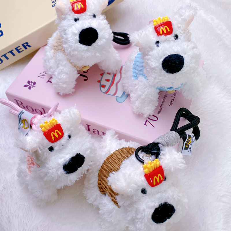 可爱薯条西高地小狗挂件毛绒车钥匙扣包挂饰ins卡通情侣公仔礼物