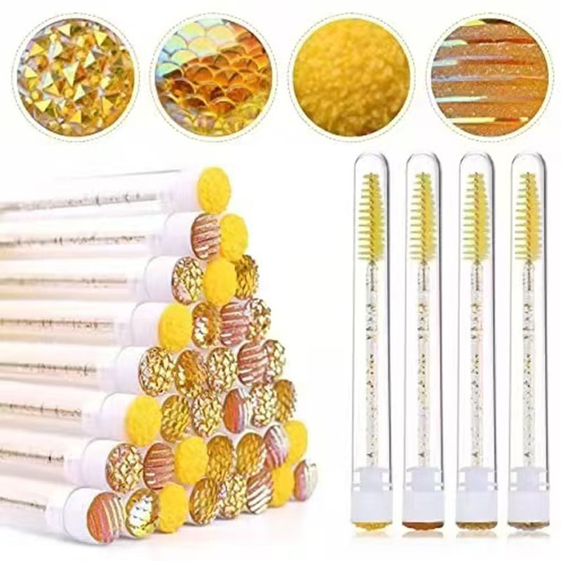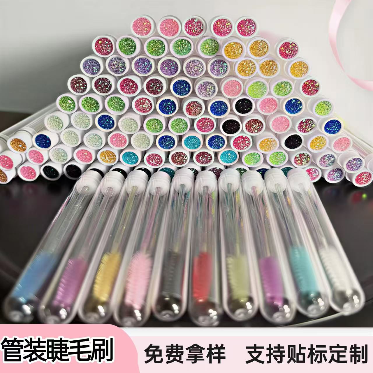 外国貿易まつげブラシチューブ、ダイヤモンドスマイリーフェイスまつげコーム付き、試験管まつげブラシ、独立したマルチカラーオプションのスパンコールまつげブラシ