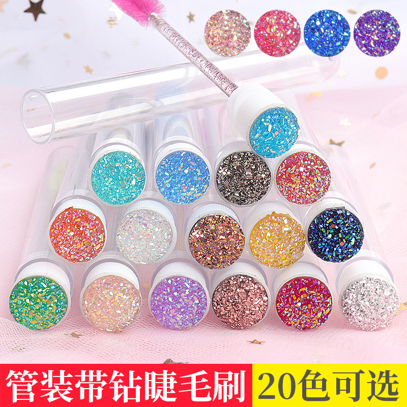 新品管装睫毛刷带钻管装水晶杆睫毛梳镶钻透明独立睫毛刷化妆刷