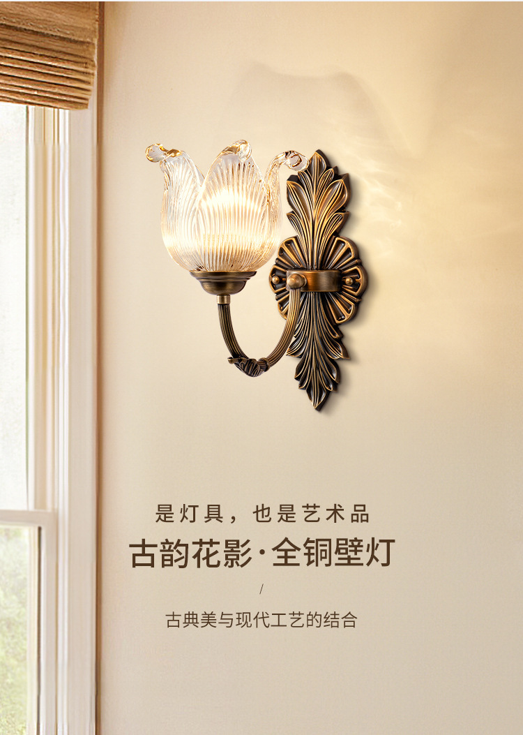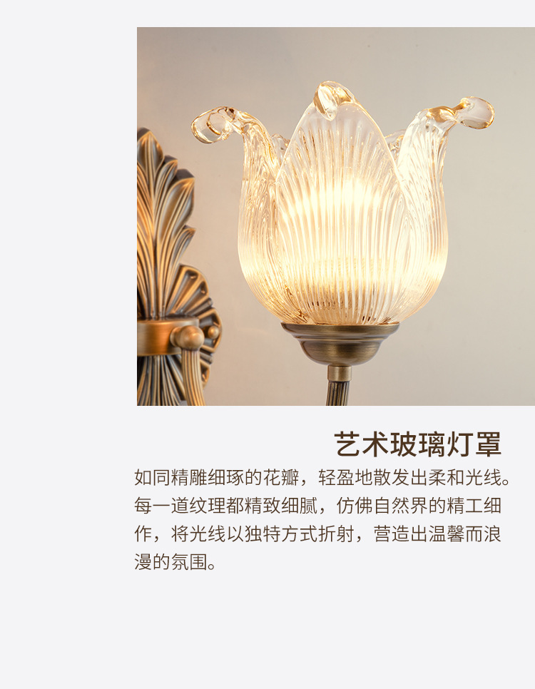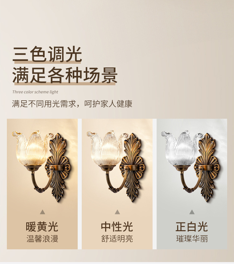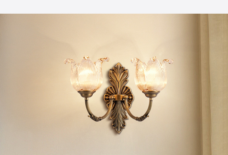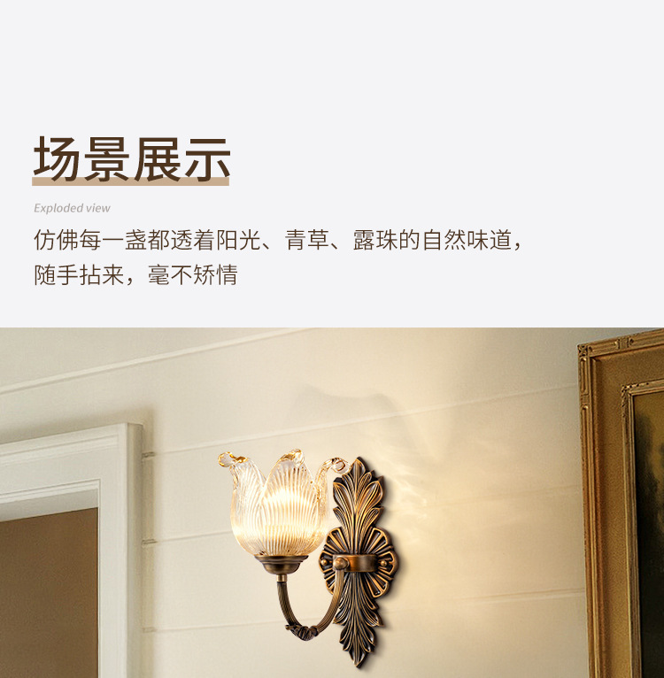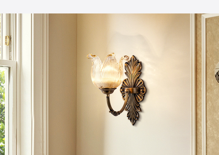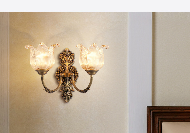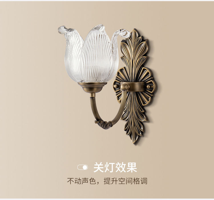 フレンチレトロウォールランプアメリカンミッドセンチュリーベッドルームベッドサイドランプリビングルーム背景壁ランプフラワーガラス暖かいランプ