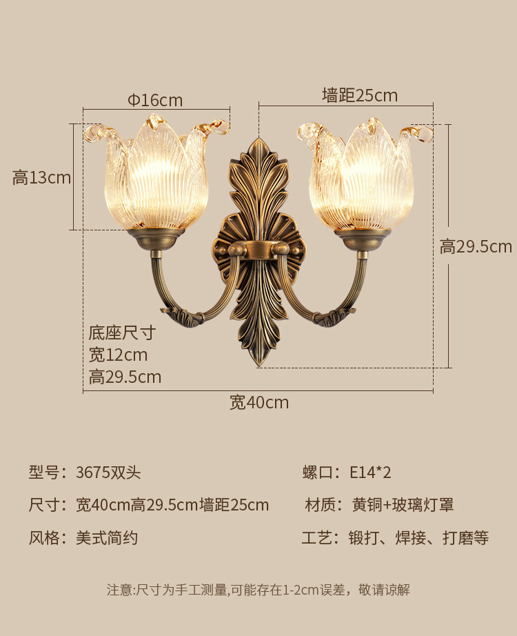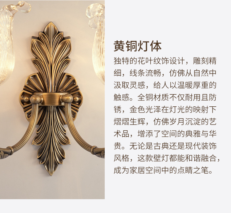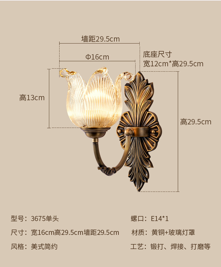 アメリカンスタイルの全銅壁ランプリビングルームの背景壁レトロヨーロッパスタイルの廊下通路階段寝室のベッドサイドランプ H13