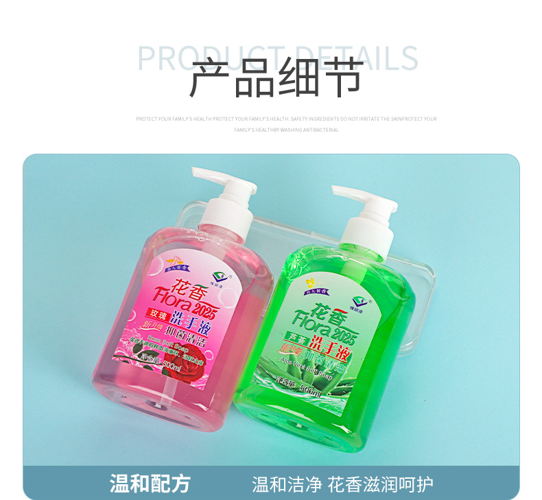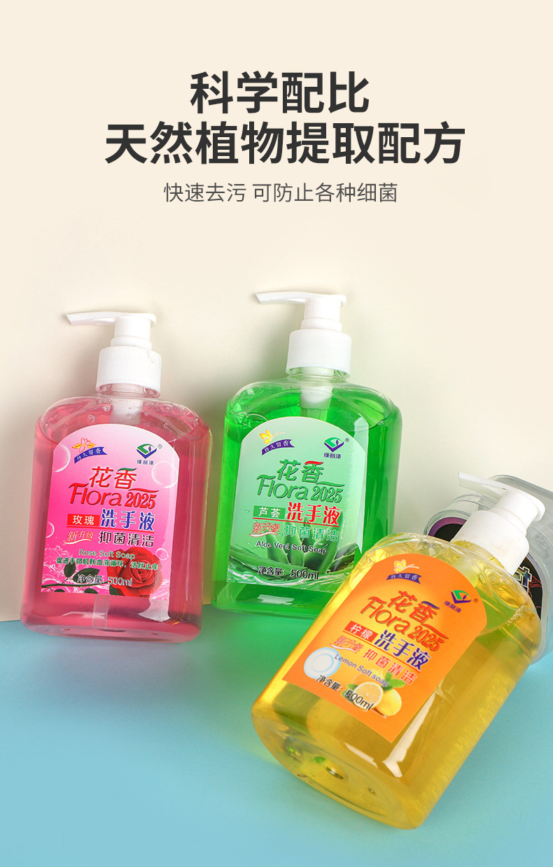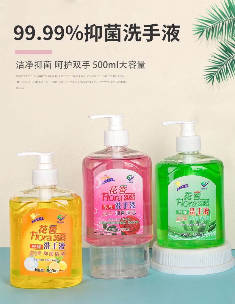 抗菌手洗い液家庭用高颜値押圧瓶花香型アロエ手洗い液家庭用エモリエント専用卸売り
