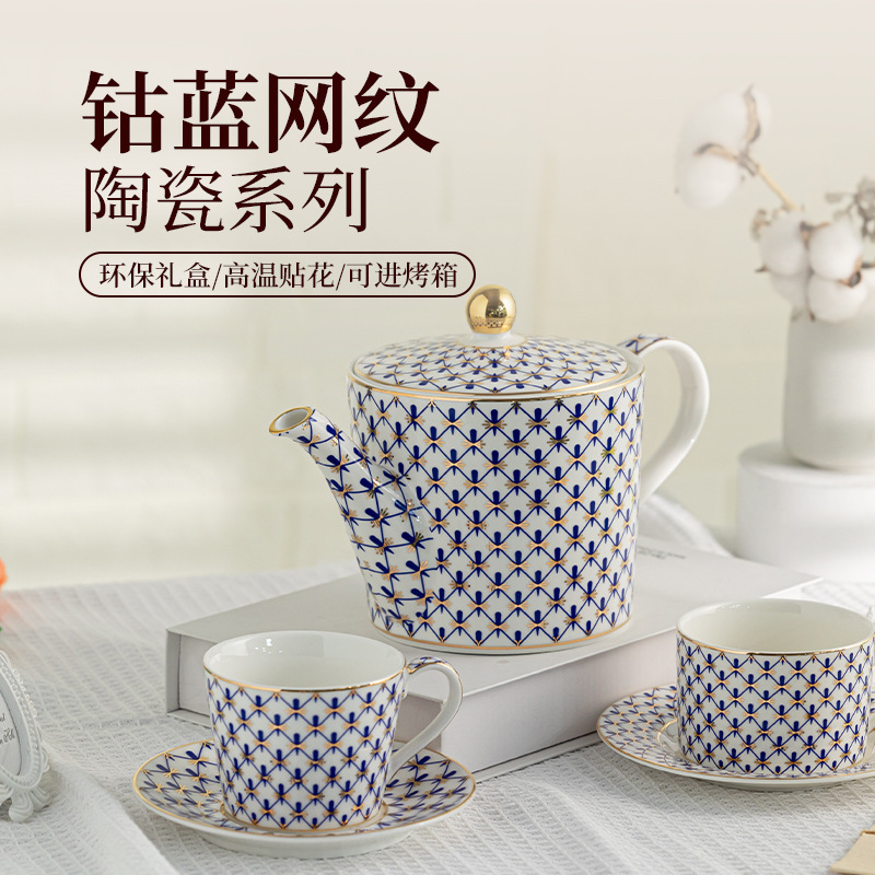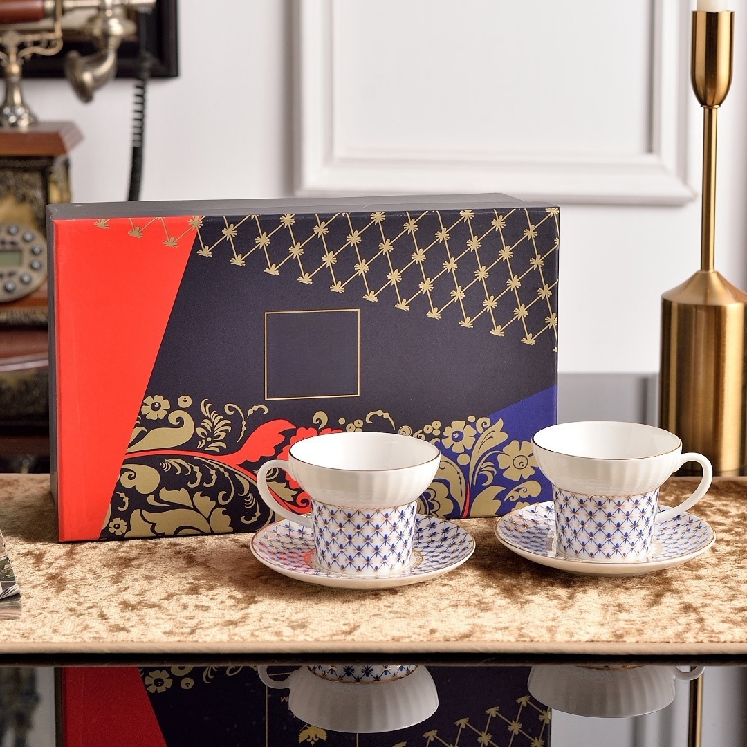 ロシア磁器ロシア皇帝コバルトブルーメッシュヨーロッパ赤メッシュコーヒーカップ絶妙なティーセットハイエンドギフトボックスセット