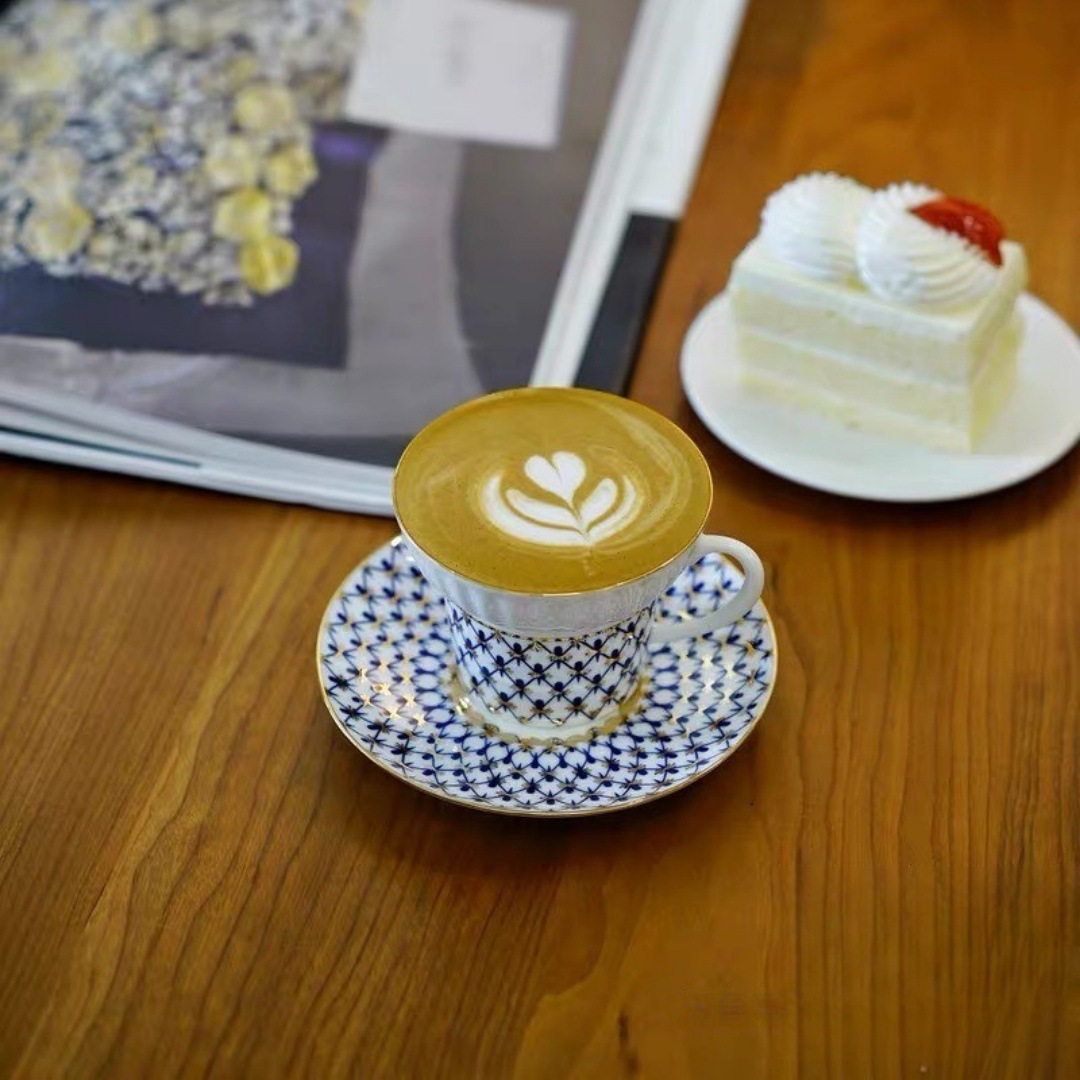 EH家英式蓝网格镀金小奢华骨瓷咖啡杯碟套装下午茶杯碟接代发批发