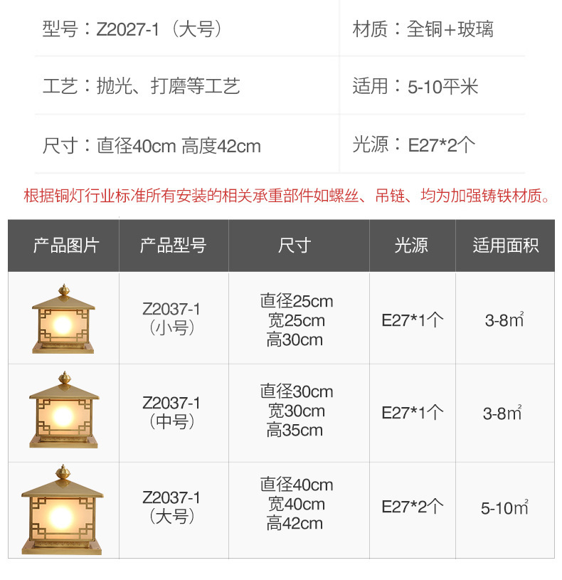 全体の寸法 【全銅製屋外ピラーランプ 小】直径25cm 高さ30cm,【全銅製屋外柱ランプ 中型】直径30cm 高さ35cm,【大型屋外用総銅製ピラーランプ】直径40cm 高さ42cm