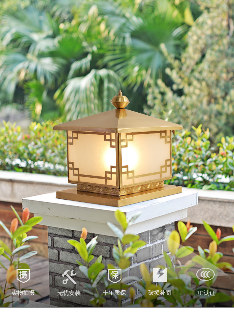 全銅の新しい中国式の屋外の柱のヘッドライトの庭の花園の別荘の玄関の家庭用の屋外の芝生の防水の壁の明かり