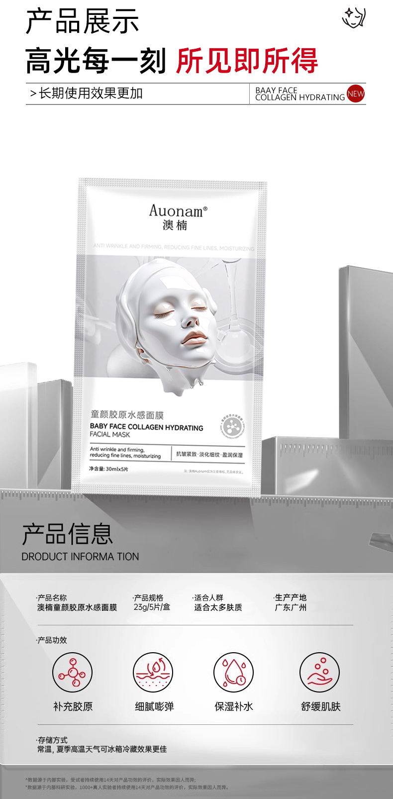 Aonan Tongyan コラーゲン ウォータリー マスク 夜更かし、保湿、肌の色を明るく、乾燥を改善し、肌に潤いを与え、栄養を与えます、Wei Xue の同じスタイル