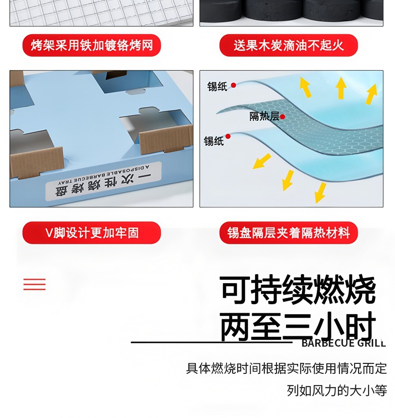 使い捨てオーブン家庭無煙炭オーブンキャンプポータブル室内木炭バーベキューグリル屋外オーブン