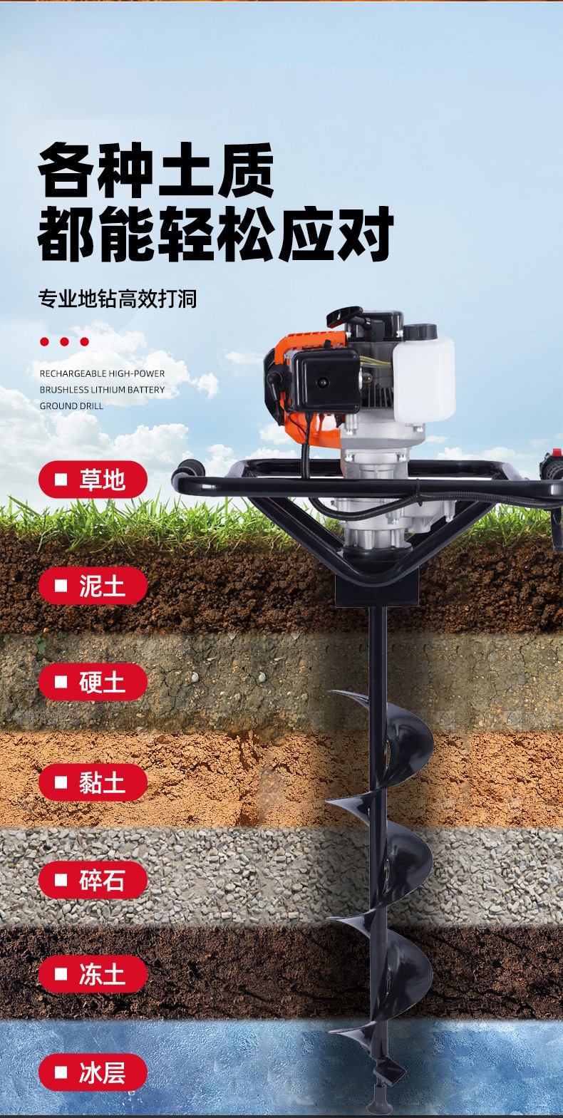 ハイパワー掘削機ポータブル小型掘削機ガソリン2サイクル52CC掘削機穴開け機