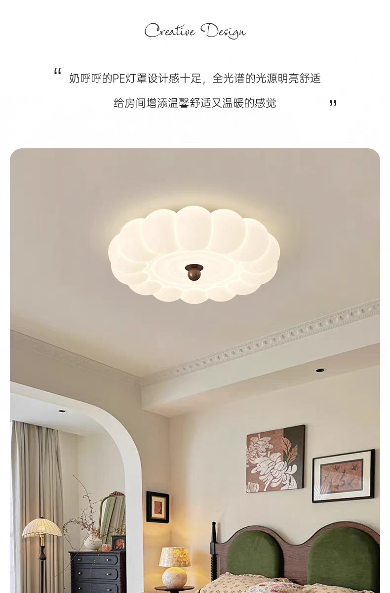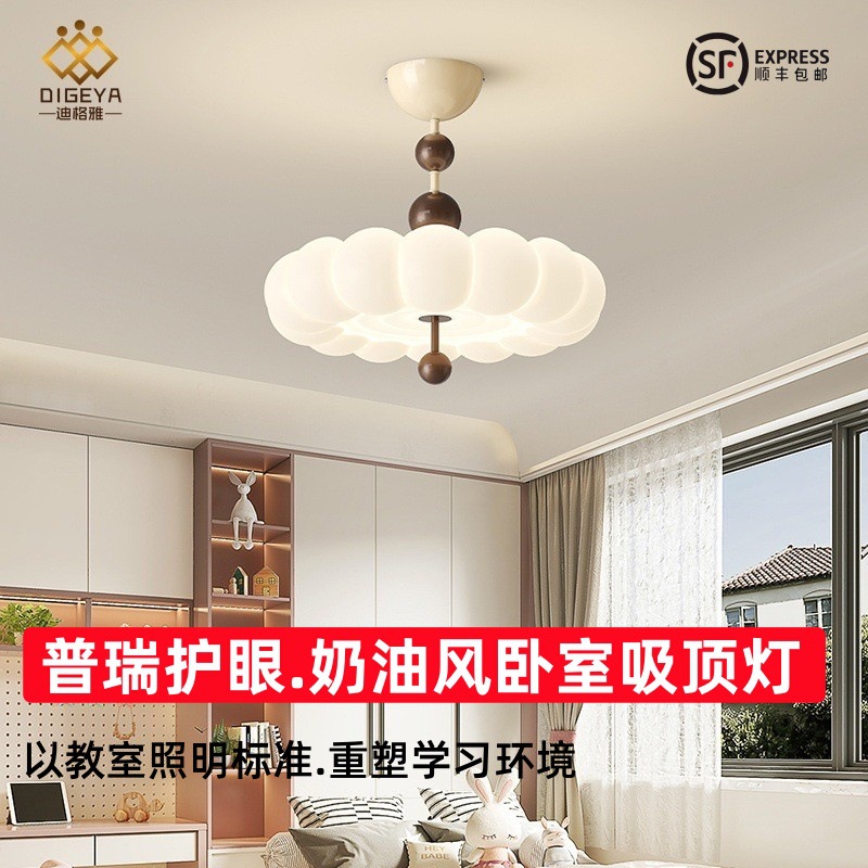 迪格雅中古风卧室书房温馨主灯创意奶油风儿童房护眼南瓜吸顶灯具