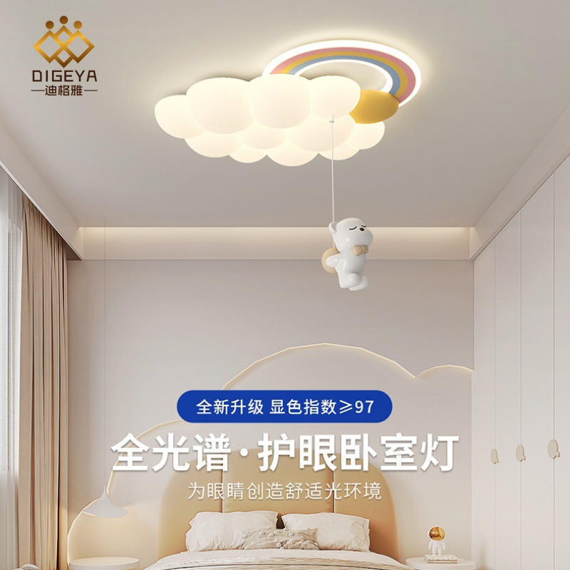 Digea クリームスタイルクリエイティブパーソナライズされた漫画レインボーフルスペクトル目の保護シンプルで暖かい子供部屋の天井ランプ