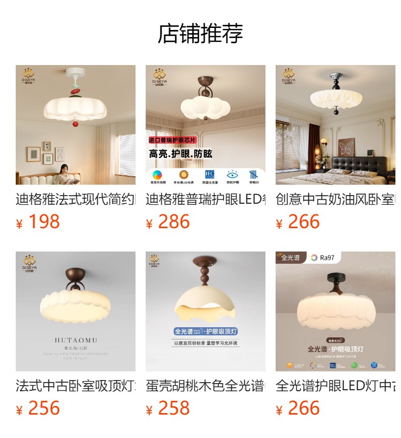 迪格雅フレンチクリーム風雰囲気感暖かい寝室の天井灯創意中古風全スペクトル知能照明器具