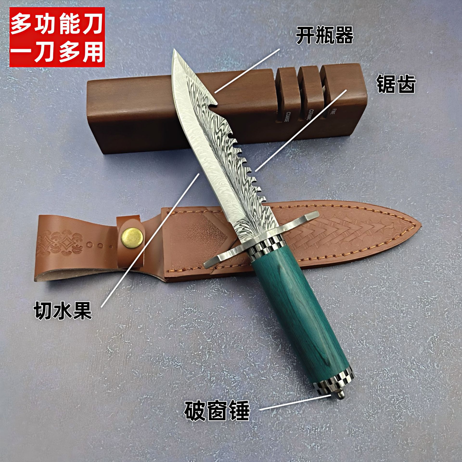 鋸歯状グリーンフェザーアウトドアナイフダマスカスフェザーパターン高硬度ストレートナイフ絶妙なフルーツナイフ国境を越えたベストセラー