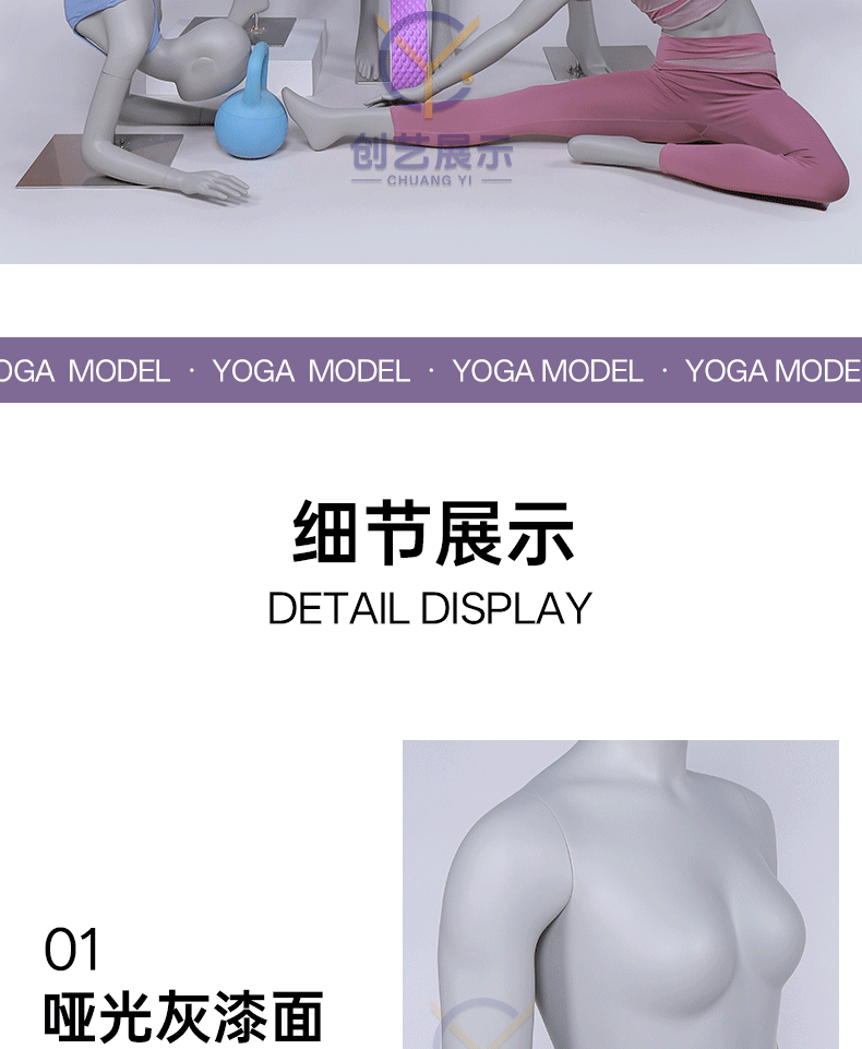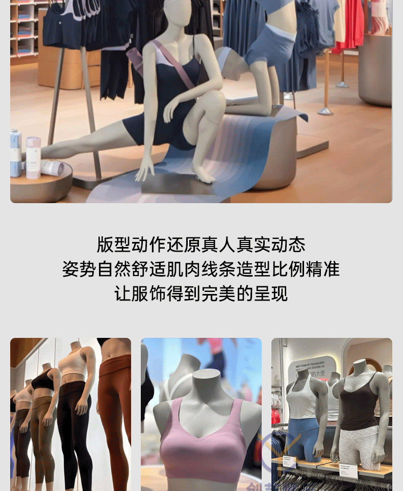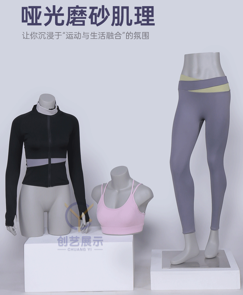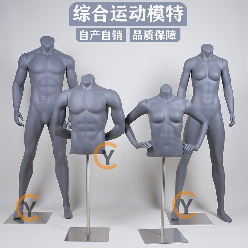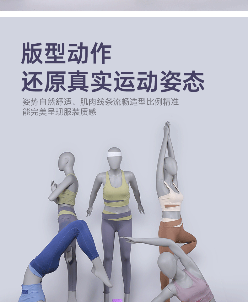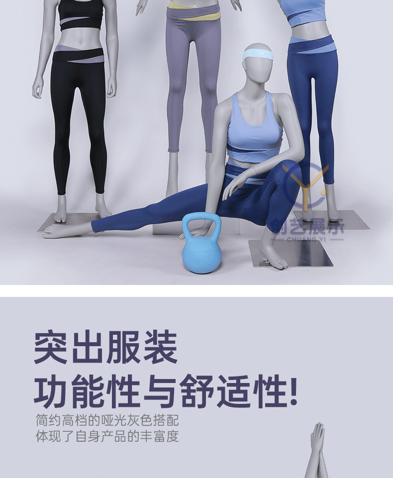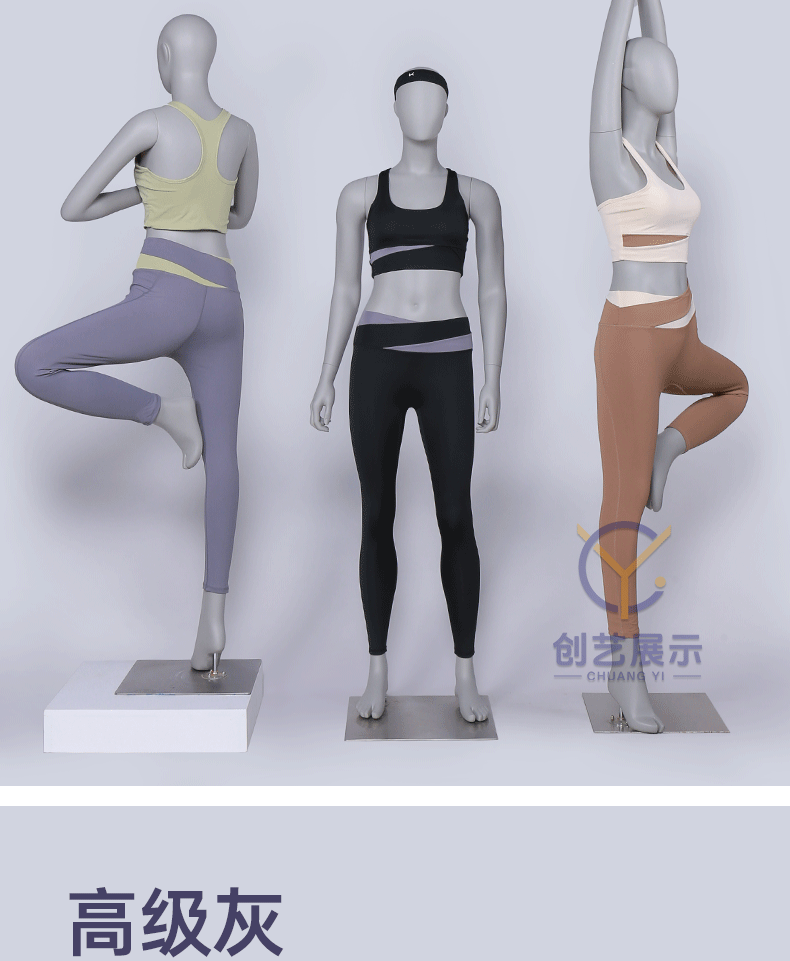 全身灰色瑜伽假人运动模特道具服装店拉伸盘腿女装人台橱窗展示架