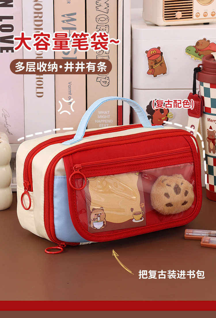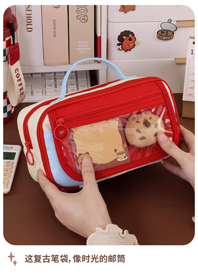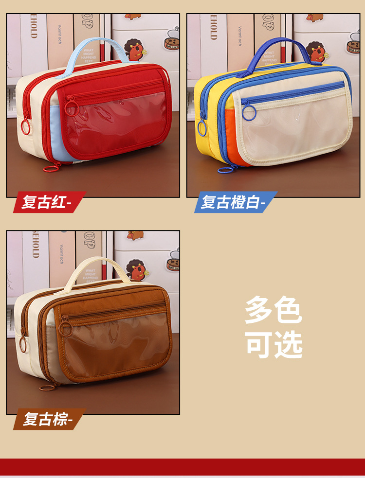 クロスボーダー新型レトロ手提げ大容量筆袋女の子高颜値ins風文房具ケース小学生文房具ケース