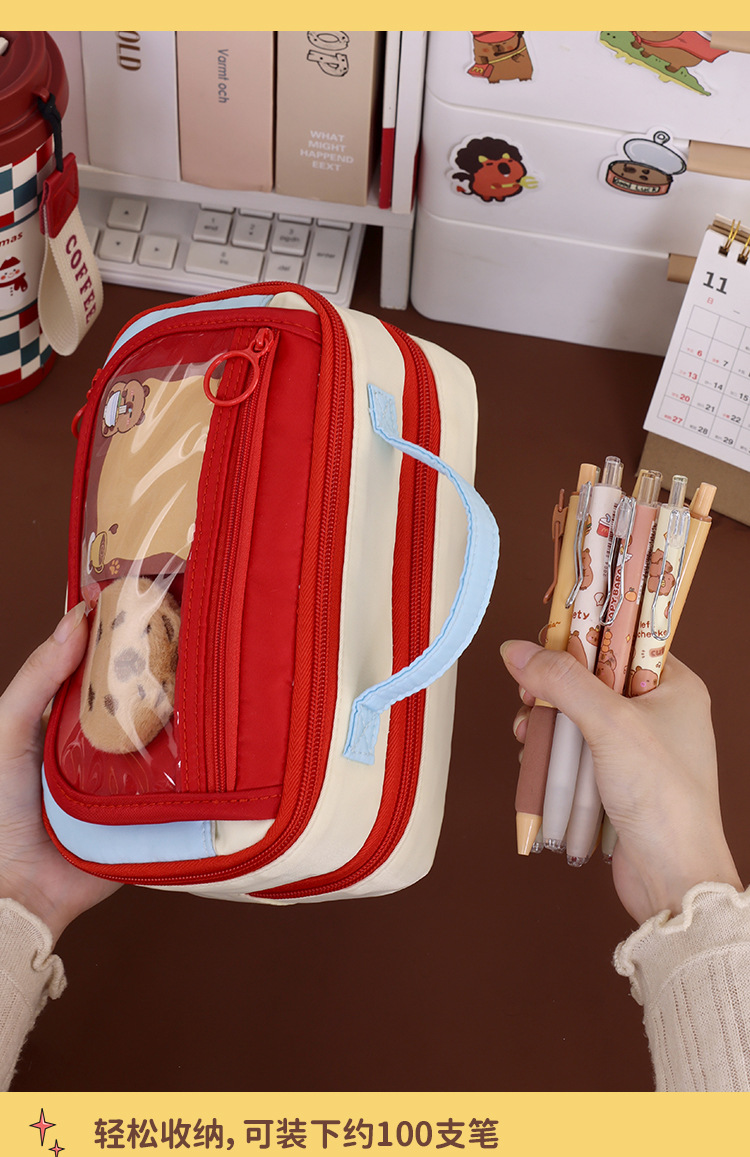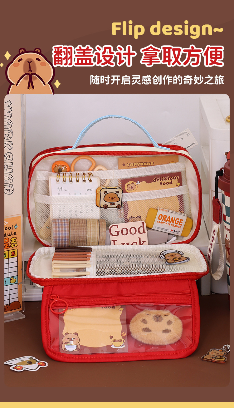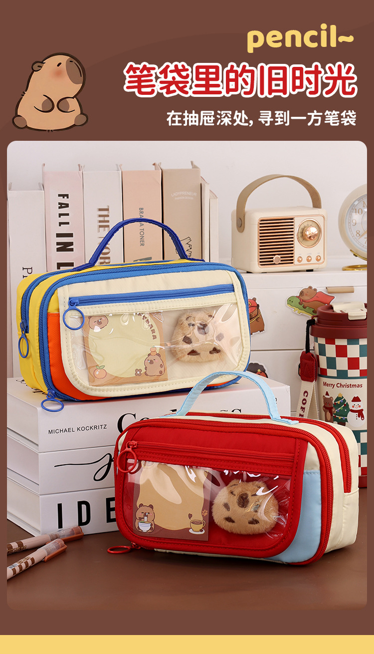 新型カバー大容量ファスナー筆袋小学生中学校高颜値文房具袋男女多機能文房具箱