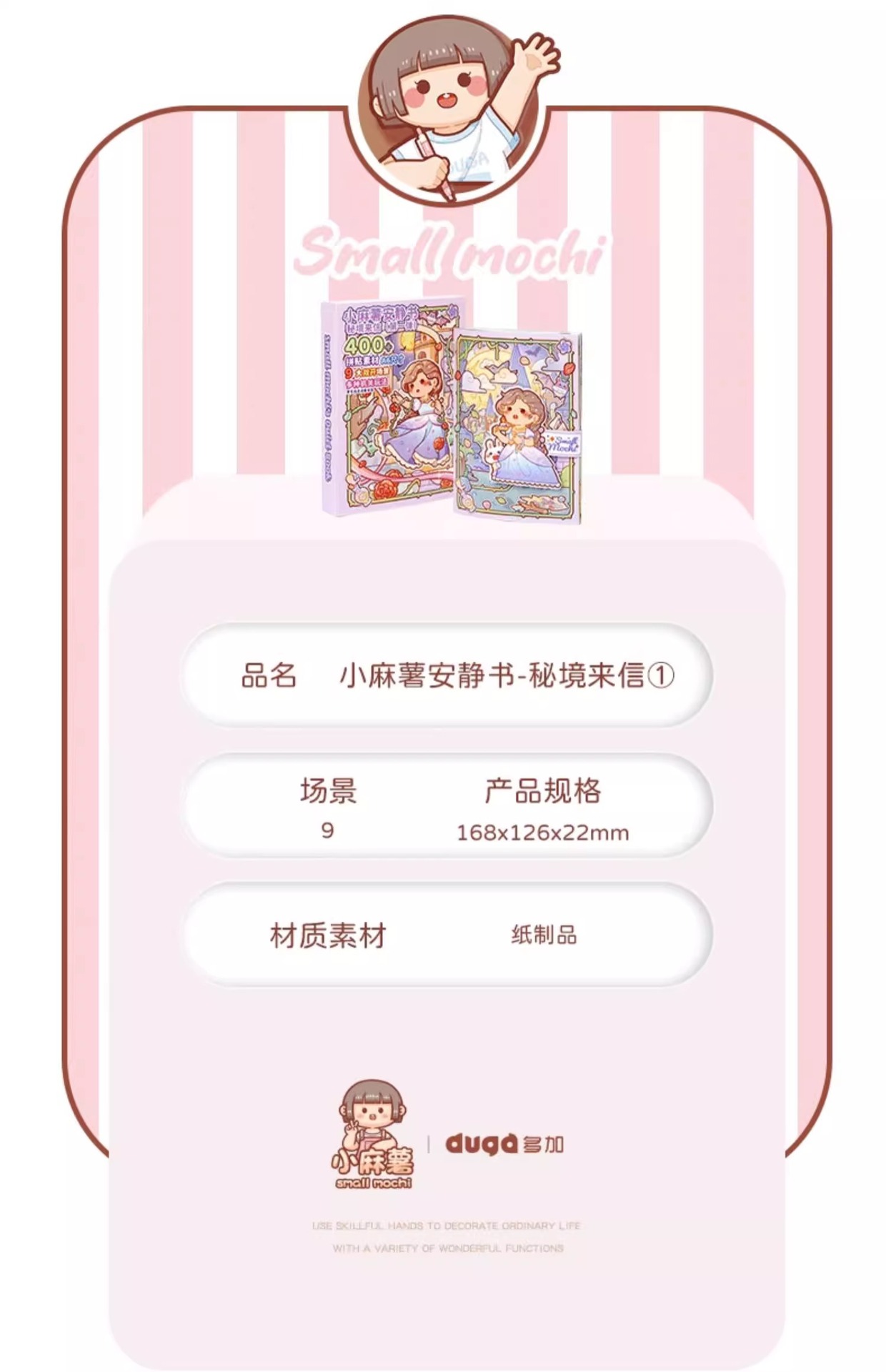 仕様 静かな本の秘密の領域からの手紙 (パート 1),静かな本の秘密からの手紙 (パート 2),リトルモチクワイエットブックアドベンチャーゲーム,静かな本 夏の回想録,Little Mochi 磁気静かな本 - 怠惰な週末,リトルモチ磁気静かな本 - 休日に楽しむ,リトル・モチの静かな本 - 家で過ごす時間,リトルモチの静かな本 - 江南旅行記